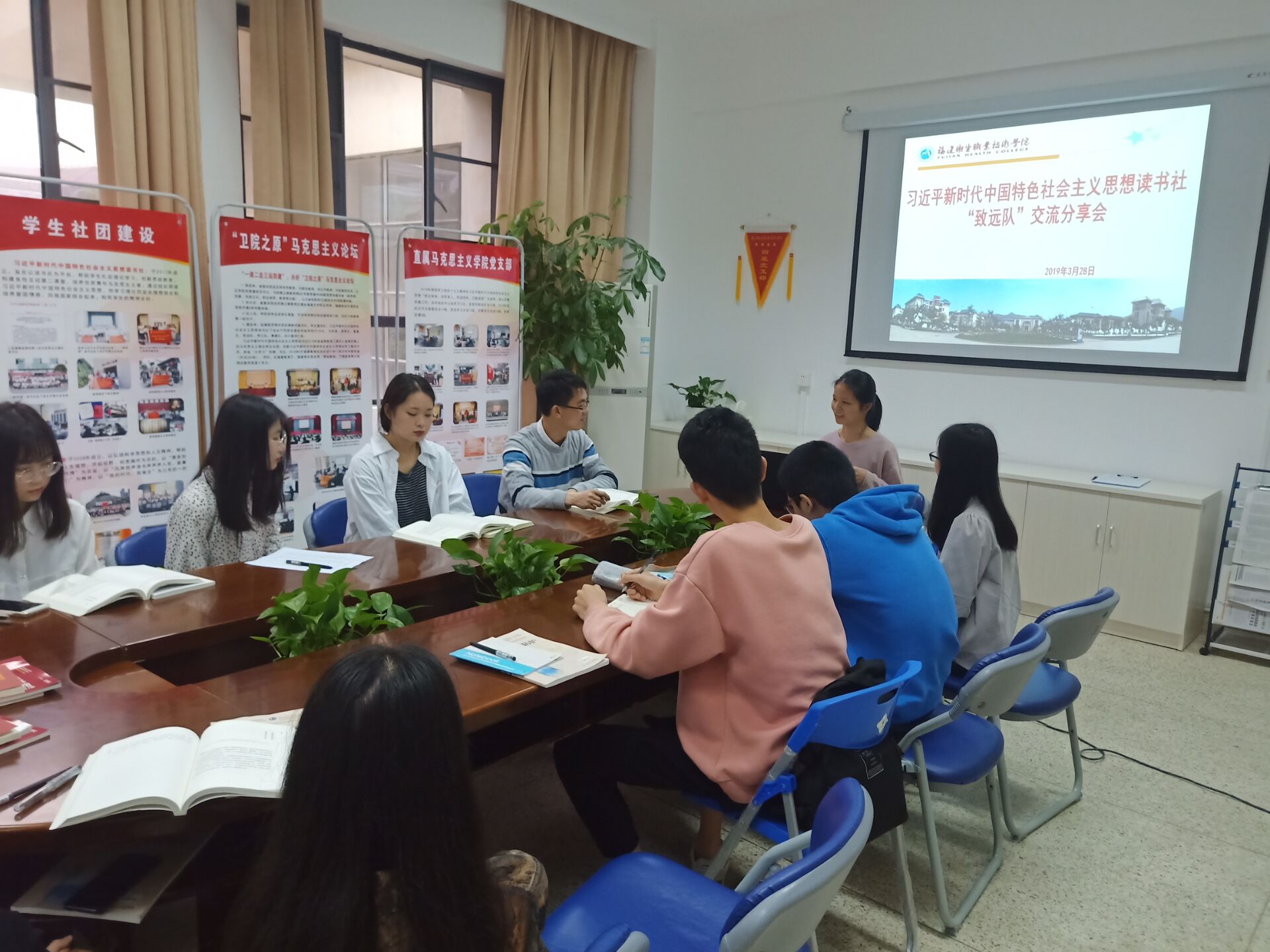 2019年3月28日下午,馬克思主義學(xué)院習(xí)近平新時(shí)代中國特色社會(huì)主義思想讀書社“致遠(yuǎn)隊(duì)”在行政樓107會(huì)議室開展讀書活動(dòng)。這次活動(dòng)由指導(dǎo)老師江洪老師主持,讀書社“致遠(yuǎn)隊(duì)”成員參加了此次活動(dòng)。