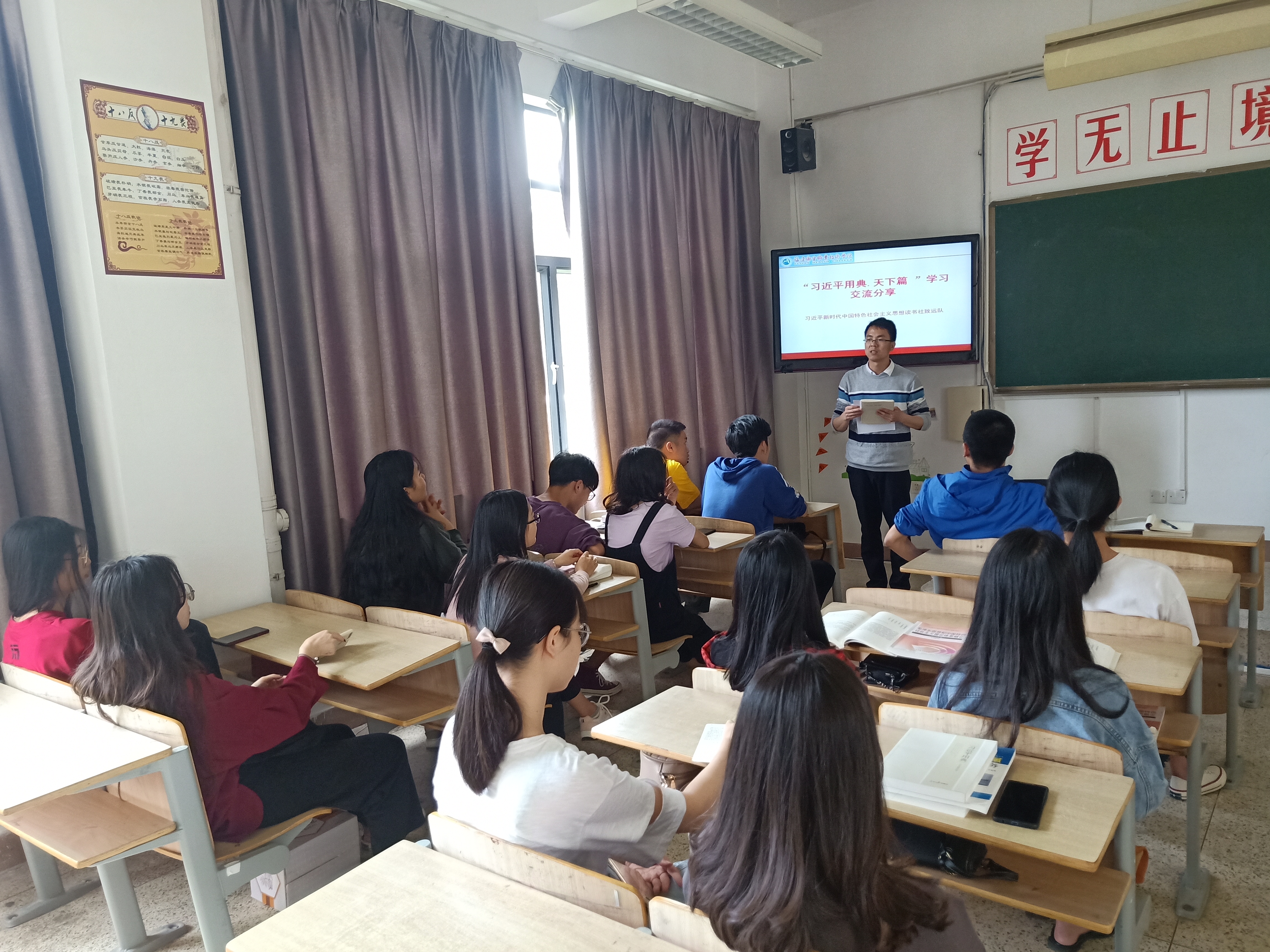 此次讀書活動的主題是學(xué)習(xí)交流分享“習(xí)近平用典.天下篇”。江洪老師對這篇當(dāng)中的“計利當(dāng)計天下利”、“浩渺行無極,揚帆但信風(fēng)”、“一花獨放不是春,百花齊放春滿園”、“物之不齊,物之情也”、“己所不欲,勿施于人”等等典故展開了深入的講解,既讓同學(xué)們掌握這些典故在原典中的意思,更重要的是讓同學(xué)們充分體會和理解到習(xí)近平總書記引用這些典故的深刻意義。在學(xué)習(xí)的過程中,江老師和同學(xué)分廣泛交流互動,讓同學(xué)們充分發(fā)表自己的學(xué)習(xí)心得,并時不時給予點評和指導(dǎo)。