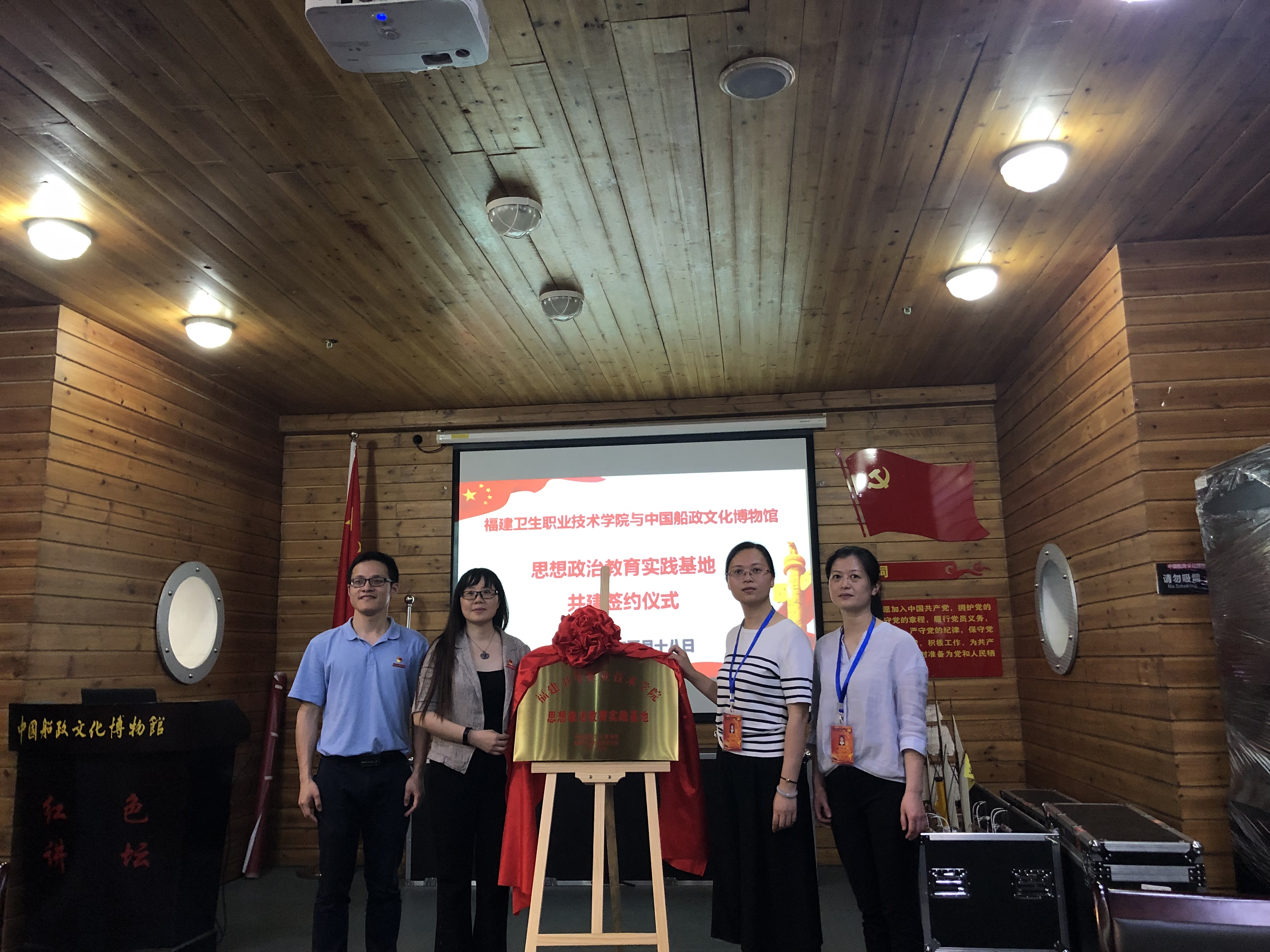 中國(guó)船政文化博物館是中國(guó)第一個(gè)以船政為主題的博物館,是全國(guó)人文科學(xué)普及教育基地和福建省高校教育實(shí)踐教學(xué)基地。馬江海戰(zhàn)紀(jì)念館作為全國(guó)重點(diǎn)文物保護(hù)單位,是福建省愛國(guó)主義教育基地,擁有豐富的教育資源。為了進(jìn)一步創(chuàng)新我校思想政治教育模式,提高實(shí)踐教學(xué)教育質(zhì)量,提升馬克思主義理論研究水平。2019年5月18日,恰逢第43個(gè)國(guó)際博物館之際,我校與中國(guó)船政文化博物館、馬江海戰(zhàn)紀(jì)念館合作共建思想政治教育實(shí)踐基地揭牌儀式在中國(guó)船政文化博物館會(huì)議室舉行。馬克思主義學(xué)院名譽(yù)院長(zhǎng)魏立娜、馬克思主義學(xué)院院長(zhǎng)熊美蘭、馬克思主義學(xué)院副院長(zhǎng)黃曦,中國(guó)船政文化博物館副館長(zhǎng)王芳、馬江海戰(zhàn)紀(jì)念館館長(zhǎng)王曉芹、福建衛(wèi)生職業(yè)技術(shù)學(xué)院“習(xí)近平新時(shí)代中國(guó)特色社會(huì)主義思想讀書社”實(shí)踐團(tuán)隊(duì)學(xué)生出席此次揭牌儀式,揭牌儀式由我校馬克思主義學(xué)院副院長(zhǎng)黃曦主持。