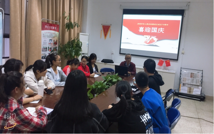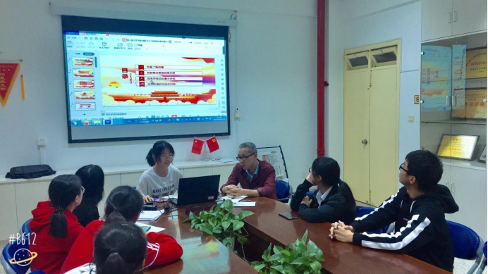 本次專題學習主要圍繞新中國成立70周年以及暑期“三下鄉(xiāng)”社會實踐活動的心得體會來展開。首先由胡濟林老師以新中國成立70周年為主題進行專題學習,胡老師介紹了國慶的來歷、新中國成立70周年的大事記、國慶大典概況、舉辦國慶大典的重大意義等。胡老師指出,這次國慶大典是在第一個百年即將到來之際,全黨全軍全國各族人民萬眾一心,朝著全面建成小康社會目標奮進的一次偉力凝聚;是在實現(xiàn)中華民族偉大復興中國夢的征程上,全體中華兒女對共同理想所作的一次豪邁宣示;是在當今世界正經(jīng)歷百年未有之大變局的形勢下,中華人民共和國始終巍然屹立于世界東方,并且愈發(fā)蓬勃、愈發(fā)健強的一次盛大亮相。接著由鐘程雅同學講解新中國成立70周年的歷史和現(xiàn)在的輝煌成就、青春隊的小隊長李昱同學匯報讀書社的暑期“三下鄉(xiāng)”社會實踐活動情況和體會。