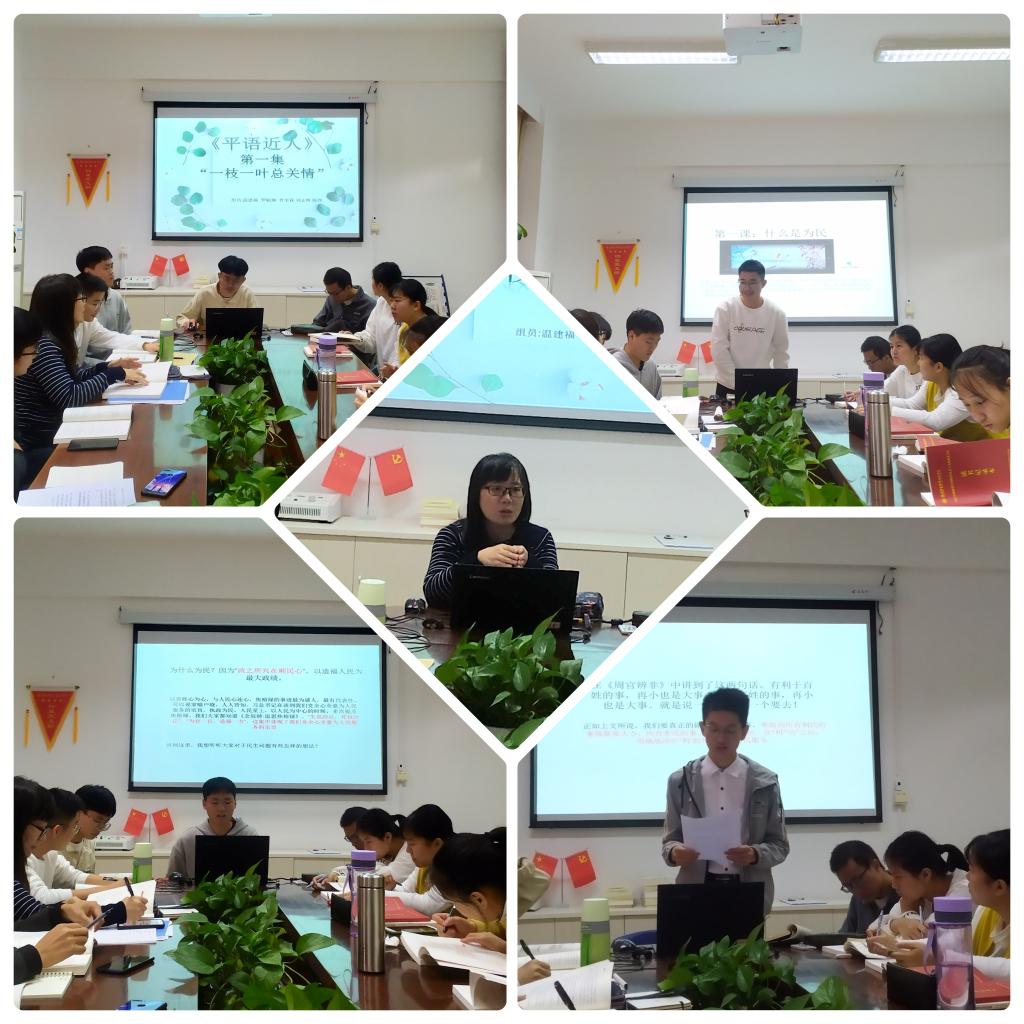 我校習(xí)近平新時(shí)代中國(guó)特色社會(huì)主義思想讀書(shū)社原夢(mèng)隊(duì)(簡(jiǎn)稱(chēng)“原夢(mèng)隊(duì)”),于2019年11月20日中午12點(diǎn)40分在馬克思主義學(xué)院社團(tuán)研討室在原夢(mèng)隊(duì)熊美蘭老師指導(dǎo)下開(kāi)展了《平語(yǔ)近人》之“一枝一葉總關(guān)情”的專(zhuān)題講解,為原夢(mèng)隊(duì)成員學(xué)習(xí)習(xí)近平總書(shū)記用典起到示范表率作用。
