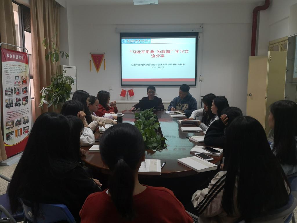 2019年11月28日,秋高氣爽,習(xí)近平新時(shí)代中國特色社會(huì)主義思想讀書社致遠(yuǎn)隊(duì)在馬克思主義學(xué)院行政樓107會(huì)議室開展《習(xí)近平用典》“為政篇”學(xué)習(xí)交流活動(dòng)。該次活動(dòng)由致遠(yuǎn)隊(duì)指導(dǎo)老師江洪主持,致遠(yuǎn)隊(duì)全體成員參加。
