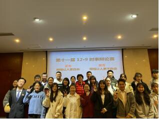 2019年12月9日晚七點(diǎn)整,由時(shí)代先鋒協(xié)會(huì)和演講與辯論俱樂部聯(lián)合舉辦的第11屆“12·9”時(shí)事辯論賽總決賽在實(shí)訓(xùn)樓4樓會(huì)議室舉行。此次辯論賽由羅世杰同學(xué)主持,由丁愛芝老師、陳洪月老師、徐舒寧老師、許一柱老師、龍慧老師擔(dān)任評(píng)委。