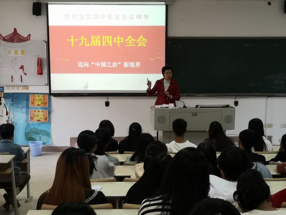 為提升時代先鋒協(xié)會成員的思想政治理論水平,2019年12月12日下午3點,時代先鋒協(xié)會的指導老師陳洪月帶領同學們解讀黨的十九屆四中全會的重要精神,重點從“對堅持和完善繁榮發(fā)展社會主義先進文化的制度和對堅持和完善共建共治共享的社會治理制度,保持社會穩(wěn)定、維護國家安全提出具體兩點要求和提出完善‘一國兩制’制度體系5大任務要求”等三個方面進行解讀。