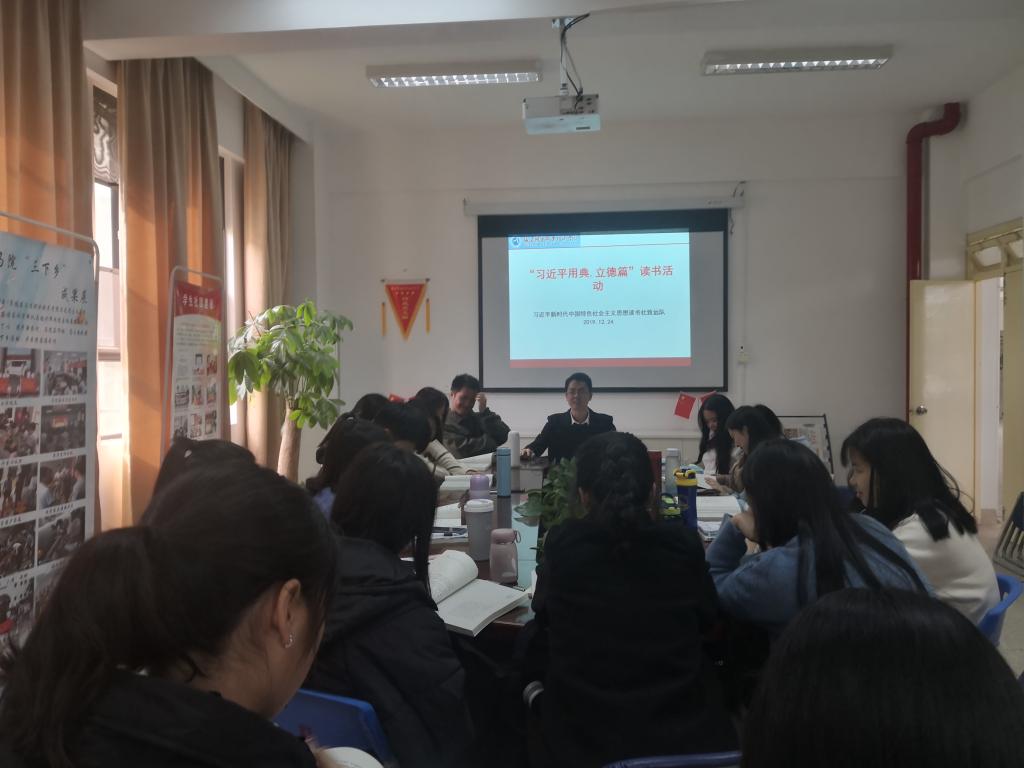 為深入學(xué)習(xí)宣傳貫徹習(xí)近平新時(shí)代中國(guó)特色社會(huì)主義思想,2019年12月24日下午,習(xí)近平新時(shí)代中國(guó)特色社會(huì)主義思想讀書社致遠(yuǎn)隊(duì)在行政樓107學(xué)習(xí)交流《習(xí)近平用典》立德篇?;顒?dòng)由指導(dǎo)老師江洪老師主持,致遠(yuǎn)隊(duì)全體成員參加了活動(dòng)。