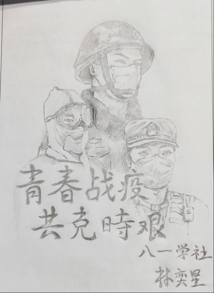 為進(jìn)一步提高全體社員對新型冠狀病毒肺炎疫情防控意識,展現(xiàn)當(dāng)代大學(xué)生與時代同行的風(fēng)采,增強(qiáng)戰(zhàn)勝疫情的信心和決心,為打贏疫情防控阻擊戰(zhàn)貢獻(xiàn)青春力量。近日,八一學(xué)社開展“青春戰(zhàn)疫共克時艱”主題征集作品活動,共收集到60件優(yōu)秀作品——包括油畫、漫畫、素描、海報、手工作品、宣傳圖片、優(yōu)秀歌曲、動畫視頻等藝術(shù)作品。