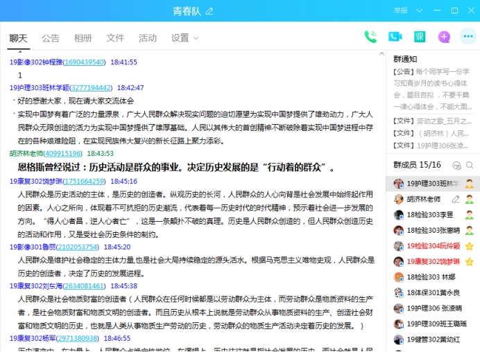 恩格斯曾經(jīng)說過,歷史活動是群眾的事業(yè),決定歷史發(fā)展的是“行動著的群眾”。為了更好地學(xué)習(xí)和認知人民群眾在歷史中的地位和作用,2020年4月29日,習(xí)近平新時代中國特色社會主義思想讀書社青春隊的同學(xué)們在胡濟林老師的指導(dǎo)下開展了第三次抗擊疫情的線上交流學(xué)習(xí)。