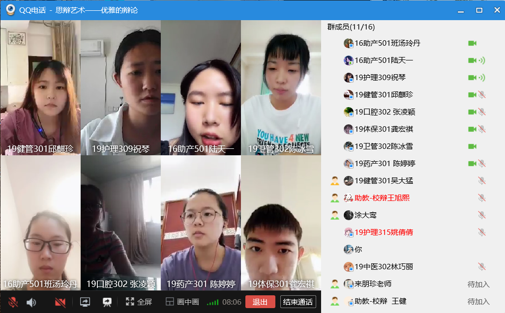 辯論場(chǎng)上你來我往,據(jù)理力辯共談“醫(yī)患”。2020年5月19日下午兩點(diǎn)“思辯藝術(shù)一一優(yōu)雅的辯論”QQ群線上開展了“如今中國(guó)面對(duì)傷醫(yī)事件,醫(yī)院是提供服務(wù)質(zhì)量重要,還是提高安保能力重要”這一辯題的辯論。本次表演賽由演講與辯論社長(zhǎng)吳大猛主持,指導(dǎo)老師徐舒寧老師及選修課班級(jí)成員皆參加了此次活動(dòng)。