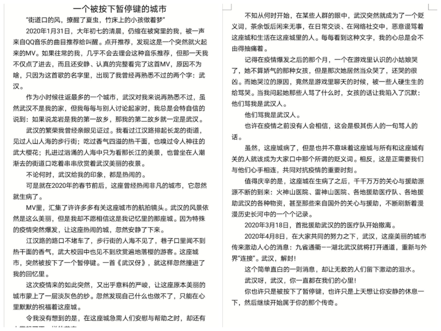 活動伊始,班長王旭熙分享了疫情期間武漢的變化及對武漢的期待,給予同學(xué)們一個很好的代入感體驗;隨后,演講班的同學(xué)們分享了一個個他們自身所難忘一件事及瞬間:自己的故事、和家人的故事、和老師的故事等等。這些故事都帶給了聽眾一種感同身受的體驗。