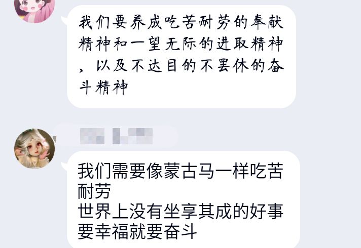 同學(xué)們?cè)赒Q進(jìn)行簽到后,首先觀看了微視頻《內(nèi)蒙古:“脫貧菜單”推動(dòng)精準(zhǔn)扶貧》該視頻讓同學(xué)們體會(huì)到了國(guó)家和政府把脫貧攻堅(jiān)放在重大政治任務(wù)、第一民生工程、統(tǒng)攬發(fā)展全局的戰(zhàn)略高度來(lái)推進(jìn)落實(shí)以及內(nèi)蒙古強(qiáng)大的脫貧力量正在不斷匯集,向著全面小康之路砥礪前行。