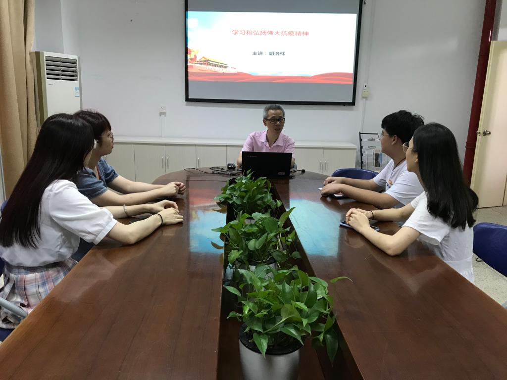 會上,首先在胡濟林老師的帶領(lǐng)下,大家一起學習了抗疫精神,胡老師重點解讀了習近平總書記在“全國抗擊新冠肺炎表彰大會”上的講話,胡老師要求大家,作為宣講團成員,要先人一步,先把抗疫精神領(lǐng)會和掌握好,然后才能開展宣講活動。接著,宣講團骨干們討論制定本學期工作計劃,確定了宣講的重點是圍繞“學習和弘揚偉大抗疫精神”,宣講團內(nèi)部還進行了分工,根據(jù)同學們的特長,分為兩個小組,每個組均配備寫作、做PPT和演講的同學,胡老師要求大家要增強團隊意識,既分工負責,各司其職,又齊心協(xié)力,集思廣益。