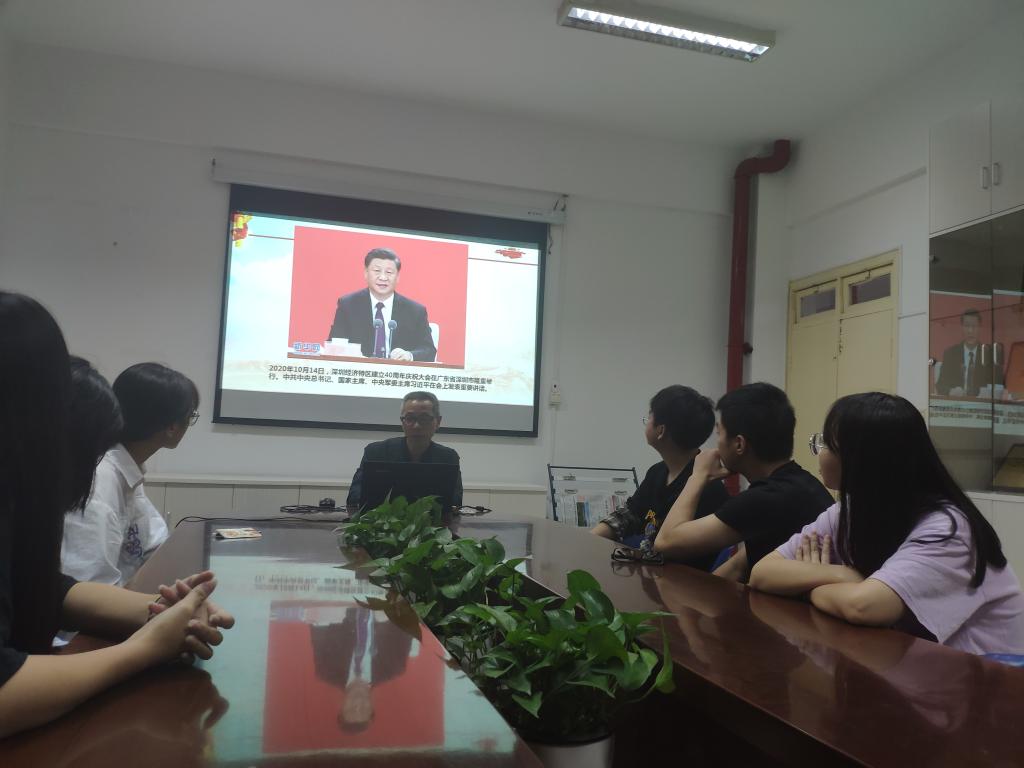 2020年10月15日晚17:10習(xí)近平新時(shí)代中國(guó)特色社會(huì)主義思想青春隊(duì)的同學(xué)們?cè)谛姓?07馬克思主義學(xué)院會(huì)議室開展了“學(xué)習(xí)習(xí)近平總書記《在深圳經(jīng)濟(jì)特區(qū)建立40周年慶祝大會(huì)上的講話》”的主題交流會(huì)。