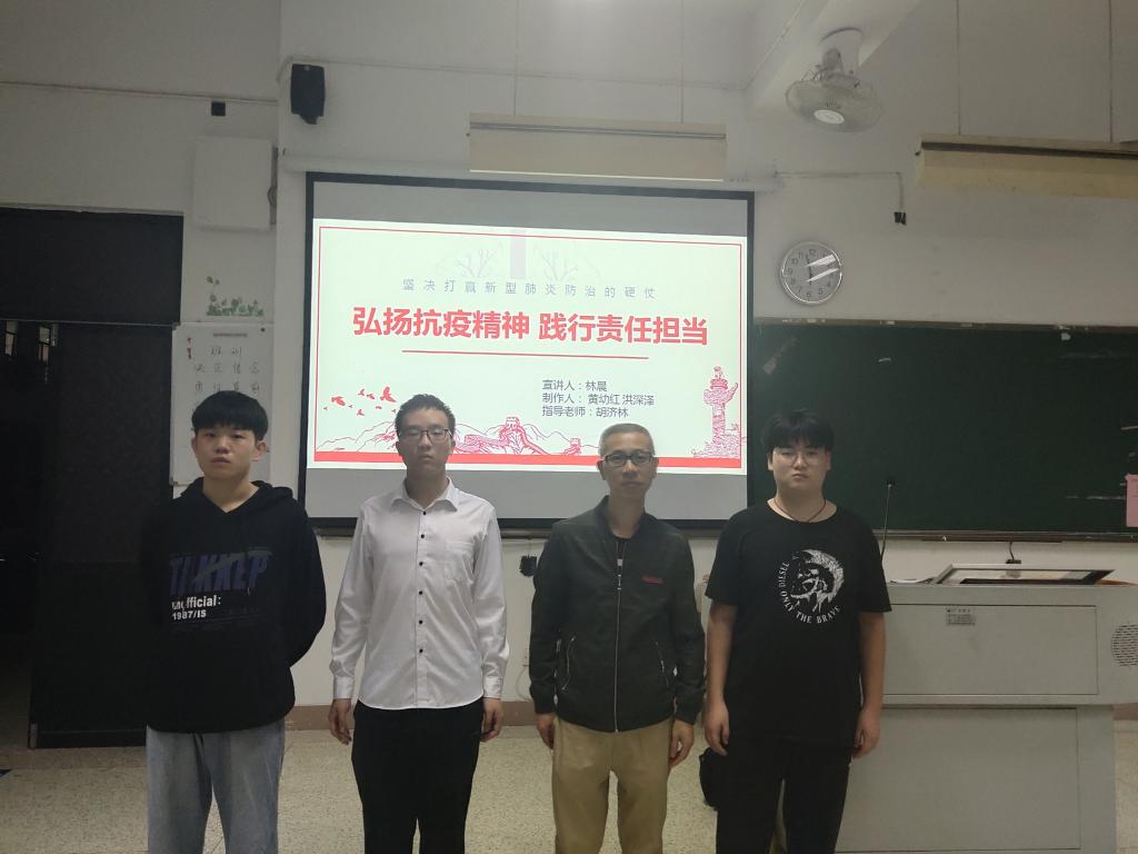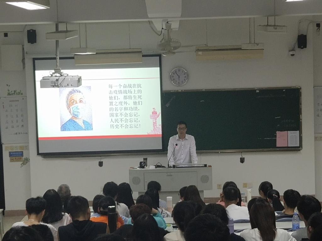 宣講中,曹倩用大量的案例向同學(xué)們解讀“共克時艱”、“共筑民族魂”、“黨員從不會缺席”、“最美中國人”等抗疫先進事跡,林晨從“舉國同心,生命至上”、“舍生忘死,不懼犧牲”、“攜手并進,命運與共”、“抗疫精神,中國擔(dān)當(dāng)”角度闡述偉大的抗疫精神,激起了同學(xué)們對抗疫精神的深入思考,引起了同學(xué)們的共鳴。宣講后胡濟林老師做了小結(jié),勉勵同學(xué)們深入學(xué)習(xí)偉大的抗疫精神,化抗疫精神為學(xué)習(xí)的動力和報效祖國的熱情,腳踏實地,砥礪前行。
