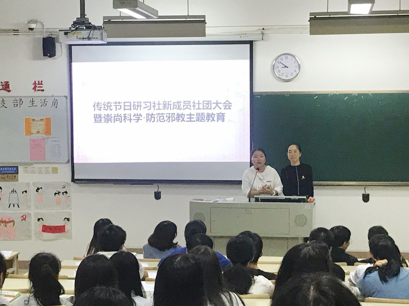 2020年11月19日晚,我校傳統(tǒng)節(jié)日研習(xí)社在教學(xué)樓115教室召開(kāi)了傳統(tǒng)節(jié)日研習(xí)社新成員社團(tuán)大會(huì)暨“崇尚科學(xué) 遠(yuǎn)離病毒 防范邪教”宣傳教育大會(huì)。