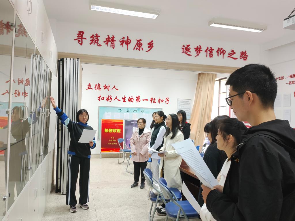 隨后,熊老師對講解稿作了學(xué)習(xí)講解,對講解手勢和站姿進(jìn)行指導(dǎo)。接著由成員們作訓(xùn)練示范,講解隊(duì)隊(duì)長19級蔡雅嵐同學(xué)踴躍報名首個示范。在她鏗鏘有力的講解下,熱烈的現(xiàn)場氣氛激發(fā)了成員們的積極性。20級的鄧新同學(xué)及何雨婷同學(xué)不愧是后起之秀,雖未實(shí)地進(jìn)行講解,但是他們的講解無不透露出自信的力量。