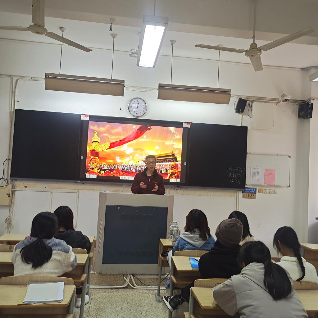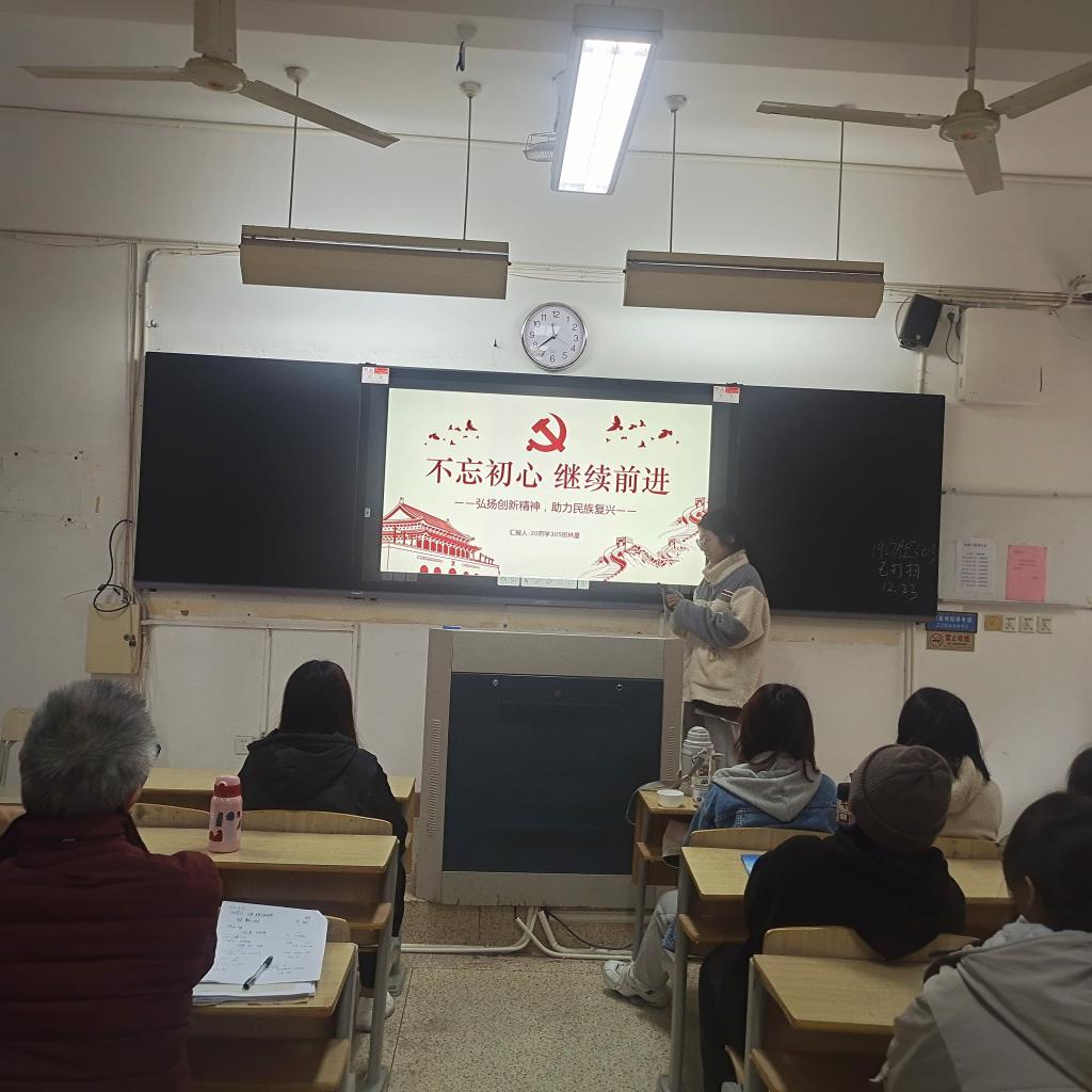 2020年12月24日中午,習(xí)近平新時(shí)代中國特色社會(huì)主義思想讀書社宣講團(tuán)在胡濟(jì)林老師指導(dǎo)下,在教學(xué)樓103舉行黨的十九屆五中全會(huì)精神第二次內(nèi)部宣講。同學(xué)們在第一次宣講的基礎(chǔ)上對ppt和文檔進(jìn)行了修改,宣講人還是魏青、林星兩位同學(xué)。