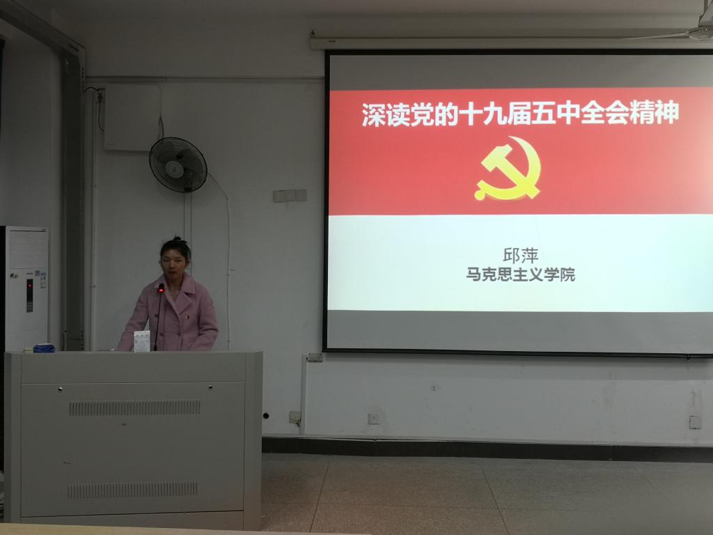邱萍老師從規(guī)劃《建議》起草、規(guī)劃《建議》亮點(diǎn)、規(guī)劃《建議》突出民生議題、雙循環(huán)的新發(fā)展格局、如何實(shí)現(xiàn)2035年遠(yuǎn)景目標(biāo)等五個(gè)方面進(jìn)行了系統(tǒng)宣講闡釋,既講清楚宏觀上的政策舉措,又不時(shí)引用接地氣的鮮活案例,讓學(xué)生們對五中全會(huì)精神有了切身的體會(huì)。邱萍老師勉勵(lì)大家把小我融入國家發(fā)展的大我之中,明確人生目標(biāo),找準(zhǔn)奮斗著力點(diǎn),學(xué)好本領(lǐng),潛心鉆研,掌握觀察和認(rèn)識世界的正確方法,努力成為國家棟梁。