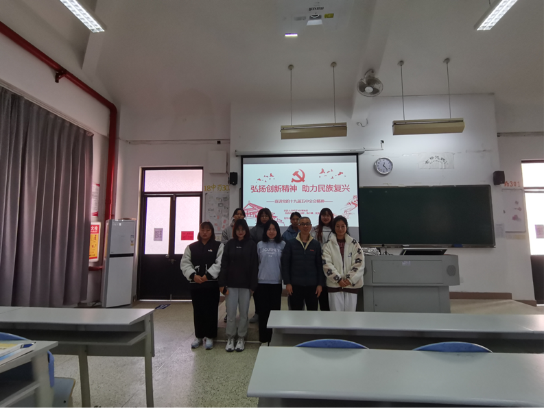 2020年12月30日上午,習(xí)近平新時代中國特色社會主義思想讀書社宣講團(tuán)在胡濟(jì)林老師組織下,在教學(xué)樓309為20衛(wèi)管301、302、中養(yǎng)生301班舉行“弘揚(yáng)創(chuàng)新精神助力民族復(fù)興”的黨的十九屆五中全會精神專題宣講。
