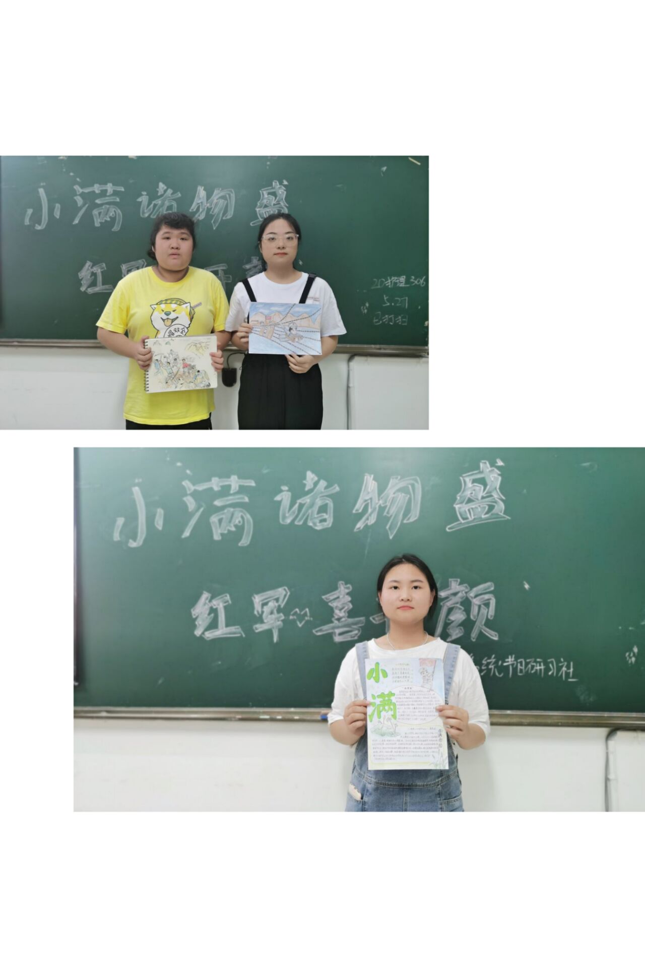 百年征程波瀾壯闊,百年初心歷久彌新。為慶祝中國共產(chǎn)黨建黨100周年,在小滿之際,紀念紅軍長征精神和弘揚中國傳統(tǒng)文化。讓同學們了解紅軍長征途中的艱苦奮斗,學會節(jié)約糧食的中華傳統(tǒng)美德。同時能夠讓同學們回顧歷史,學習艱苦奮斗的長征精神,增進學生愛國主義精神。2021年5月27日晚上,傳統(tǒng)節(jié)日研習社在教112開展了主題為“小滿諸滿物,紅軍喜開顏”的慶?!靶M”活動。