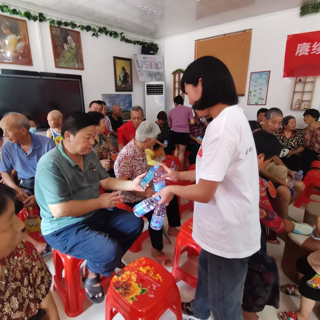 最后,聽風吹過田野,聞花香留戀鄉(xiāng)野,在最炎熱的天氣,送上我們對老人們最忠實的關(guān)心,看水波粼粼,讓愛心隨著風,飄向遠方。