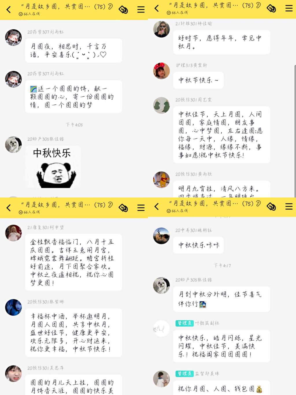 中秋作為我國四大傳統(tǒng)節(jié)日之一,在2006年5月20日被列入首批國家級非物質(zhì)文化遺產(chǎn)名錄,自2008年起被列為國家法定節(jié)假日。為詮釋傳統(tǒng)節(jié)日中秋節(jié)的內(nèi)涵和底蘊,弘揚中國傳統(tǒng)文化,培養(yǎng)愛國情懷。同時為響應(yīng)國家疫情防控政策,讓無法回家團圓的同學(xué)們感受校園大家庭的溫暖與親情。傳統(tǒng)節(jié)日研習(xí)社與社團部聯(lián)合舉辦了“月是故鄉(xiāng)明,共賞團圓月”的線上中秋活動。