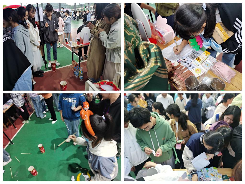 游園活動(dòng)正式開(kāi)始,納新現(xiàn)場(chǎng)擁擠起來(lái),游園會(huì)熱鬧非凡——精彩的游戲和豐厚的獎(jiǎng)品吸引了很多同學(xué)前來(lái)游玩,拿到獎(jiǎng)品的同學(xué)們洋溢著喜悅的笑容,樂(lè)在其中;社團(tuán)干事們精心布場(chǎng),每個(gè)細(xì)節(jié)都灌入了對(duì)社團(tuán)未來(lái)的一份憧憬,新生們帶著幾分好奇和期待,前來(lái)社團(tuán)的攤位參加游戲與咨詢(xún)。面對(duì)新生們的種種疑問(wèn),社團(tuán)干事們始終保持著親切的微笑,耐心為新生們答疑,介紹社團(tuán)的特色和亮點(diǎn)。