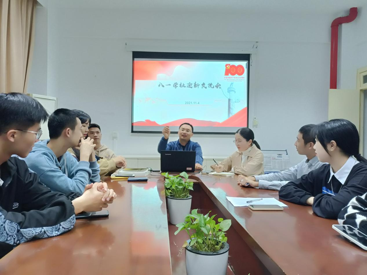 2021年11月4日下午,八一學(xué)社在馬克思主義學(xué)院107會議室舉行迎新交流會,八一學(xué)社指導(dǎo)老師張崇飛、楊央以及全體社員參加交流會。