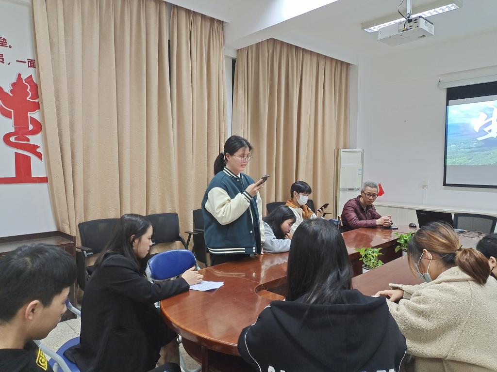 接著,會議進(jìn)入了第二次議程,由鄭聰賢同學(xué)匯報(bào)《習(xí)近平生態(tài)文明思想》,連慧琳同學(xué)上臺朗誦《最重要的還是保護(hù)好》,新隊(duì)友謝函翀同學(xué)演講《習(xí)近平總書記在福建建設(shè)生態(tài)文明的探索和實(shí)踐》。三位同學(xué)講解語言連貫,內(nèi)容豐富,得到同學(xué)與老師的一致好評。
