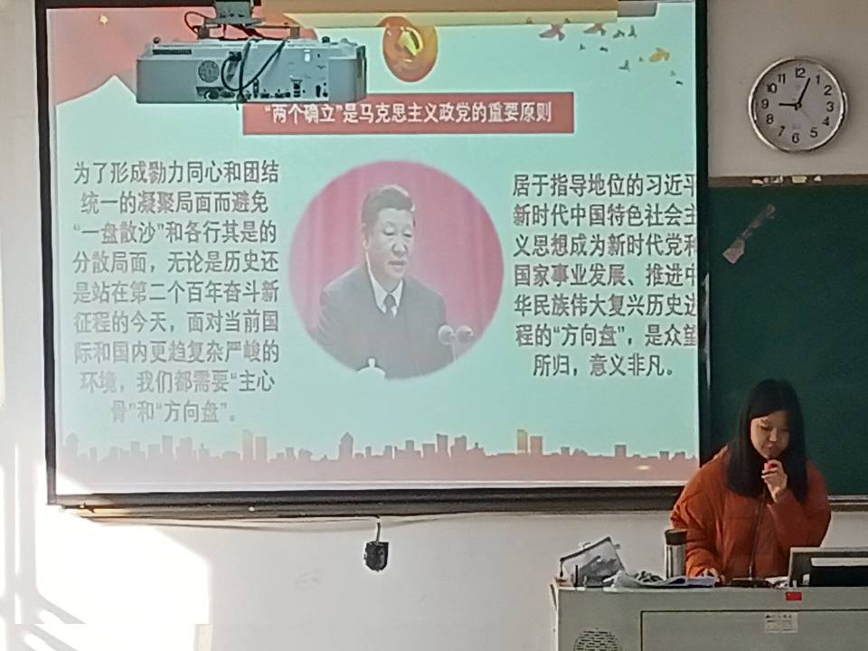 2022年1月3日上午,習(xí)近平新時(shí)代中國特色社會主義思想讀書社宣講團(tuán)在胡濟(jì)林老師的組織下,到教學(xué)樓209為21老年保健301、21臨床303、21臨床304班開展“‘兩個(gè)確立’的決定性意義”專題宣講。