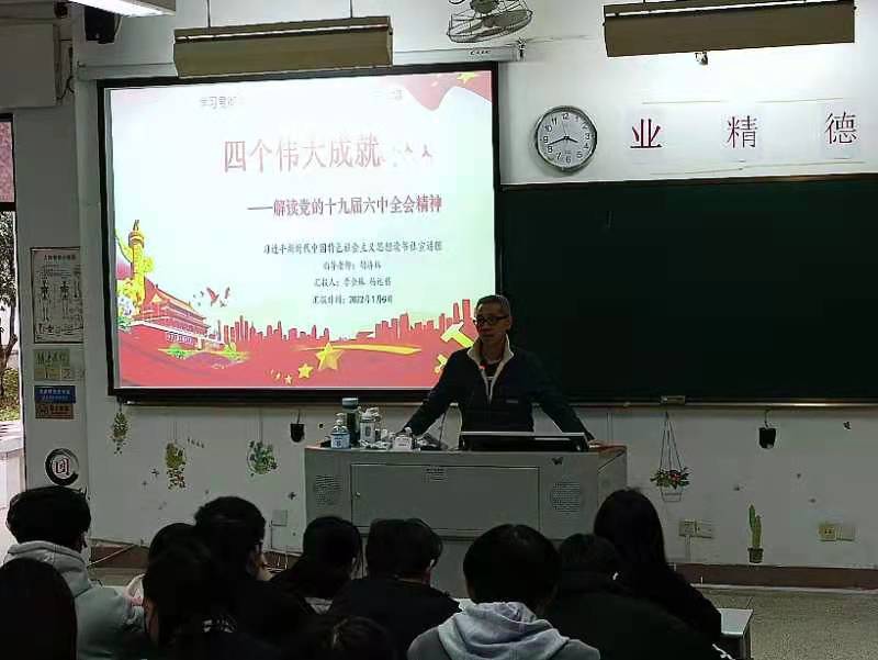 2022年1月6日下午,習(xí)近平新時(shí)代中國特色社會(huì)主義思想讀書社宣講團(tuán)在胡濟(jì)林老師的組織下,到教學(xué)樓109為21體保301 、21藥學(xué)305、 21藥學(xué)306班開展“四個(gè)偉大成就”專題宣講。