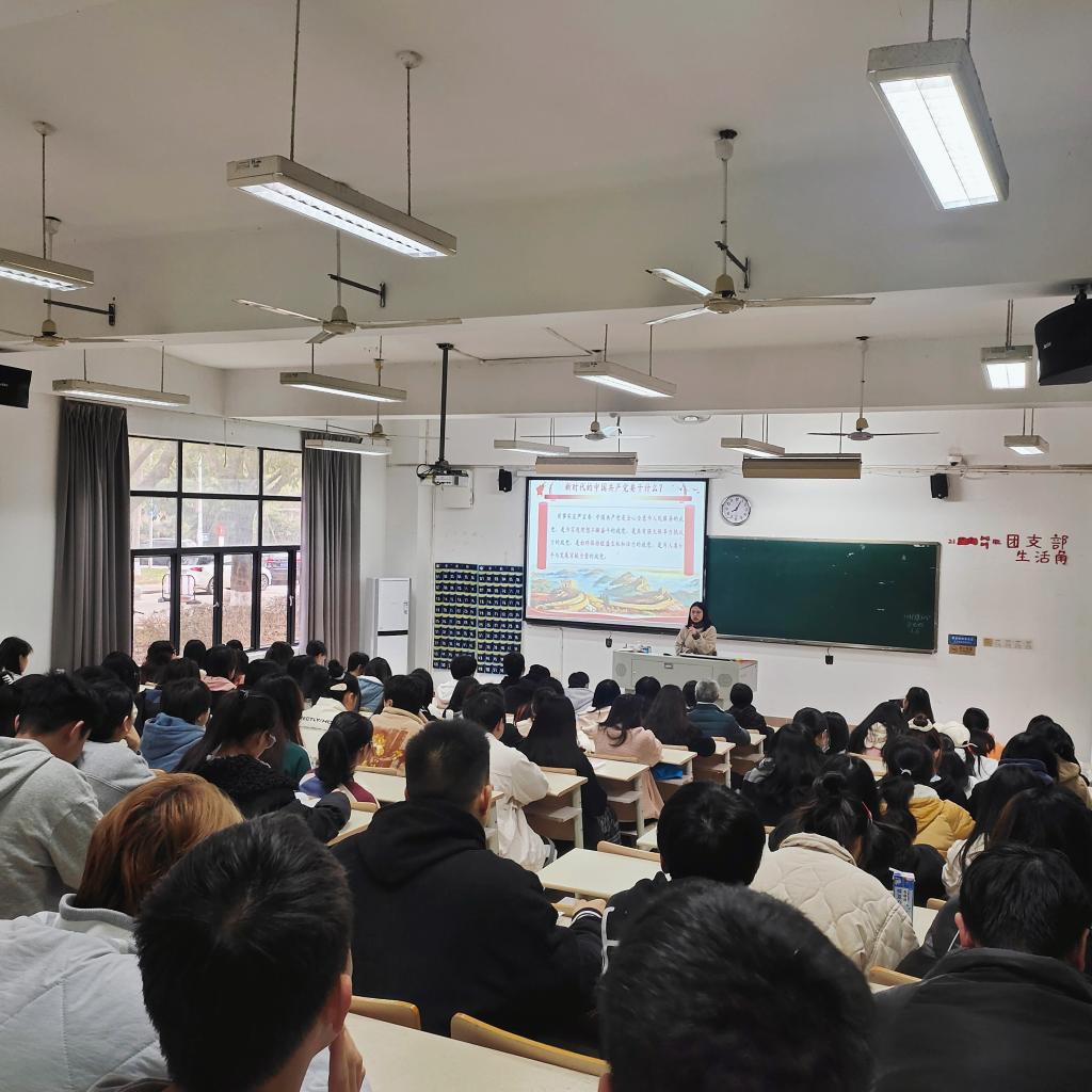 2022年1月7日,習近平新時代中國特色社會主義思想讀書社宣講團在胡濟林老師的組織下,到教學樓111為21藥產301、302班開展“深刻領會黨百年奮斗的歷史經驗”專題宣講。