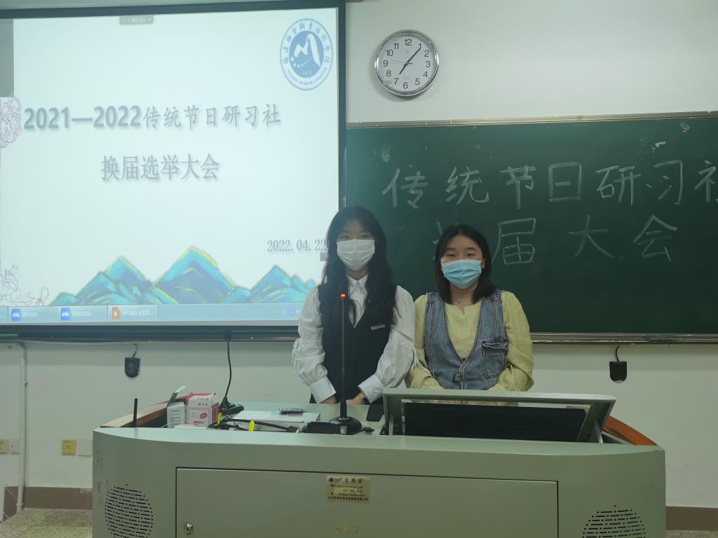 2022年4月22日晚,傳統(tǒng)節(jié)日研習(xí)社在教111舉行了2021屆換屆大會(huì)。社團(tuán)指導(dǎo)老師林美辰、顏冰鳳,傳統(tǒng)節(jié)日研習(xí)社全體干事以及35名社員參加此次大會(huì)。