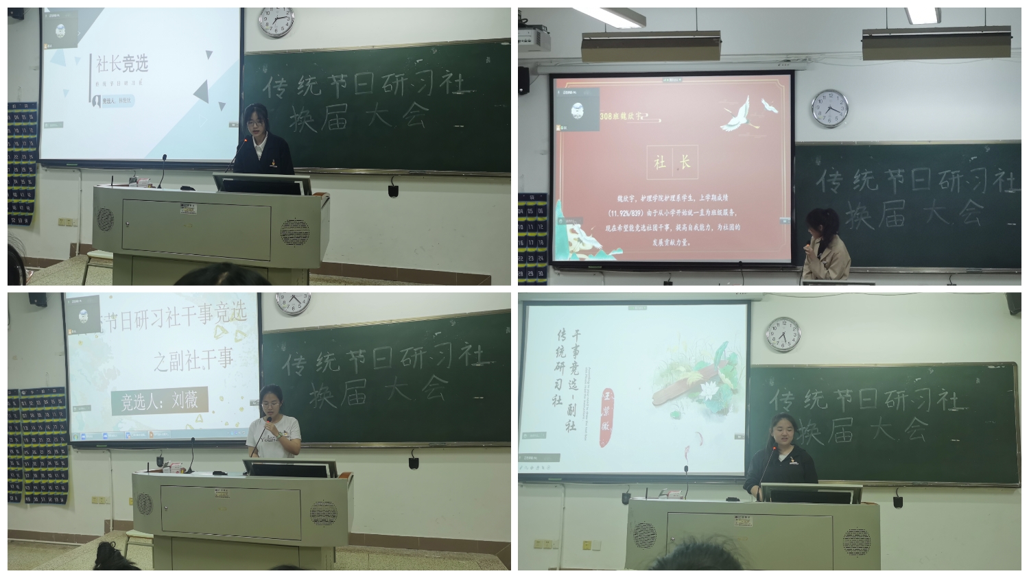 此次大會(huì)由傳統(tǒng)節(jié)日研習(xí)社社長(zhǎng)伊茜主持,在林美辰的致辭中拉開序幕,她對(duì)一學(xué)期工作進(jìn)行回憶總結(jié),充分肯定了上一屆社團(tuán)工作,同時(shí)對(duì)新一屆干事也提出了期盼和展望,分享了一系列在社團(tuán)的收獲與感想,表達(dá)了對(duì)傳統(tǒng)節(jié)日研習(xí)社最真摯的祝愿。