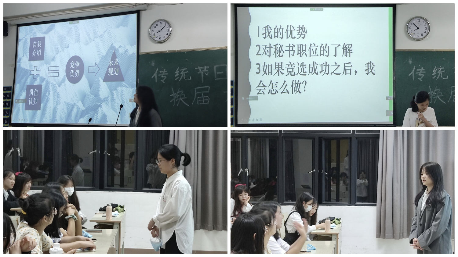 本次換屆競(jìng)選主要分為兩個(gè)部分,第一部分是競(jìng)選者在臺(tái)上展示自己精心制作的競(jìng)職PPT、講述自己對(duì)社團(tuán)工作的認(rèn)識(shí)、展現(xiàn)自己的優(yōu)勢(shì)和特長(zhǎng),第二部分由指導(dǎo)老師和干事們針對(duì)競(jìng)選者的崗位職責(zé)和未來工作規(guī)劃進(jìn)行針對(duì)性的提問。選舉的結(jié)果秉承公平公正、民主公開的原則,演講結(jié)束后,由社團(tuán)成員進(jìn)行投票以及綜合老師意見后決定,競(jìng)選結(jié)果及具體職務(wù)安排于近期公布。