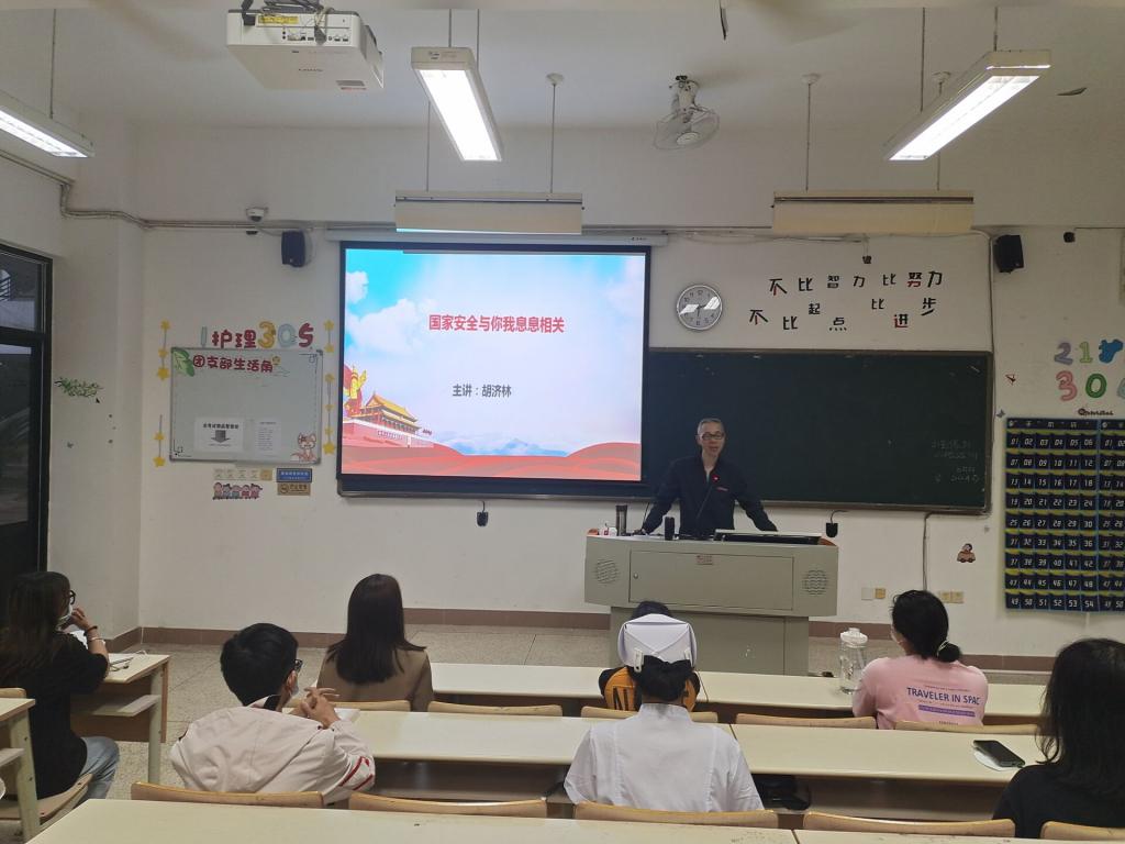 活動(dòng)伊始,由胡濟(jì)林進(jìn)行《國(guó)家安全與你我息息相關(guān)》專題的講解。胡濟(jì)林強(qiáng)調(diào),我們每個(gè)人都是國(guó)家安全的共享者,是國(guó)家安全的共建者,也是國(guó)家安全的守護(hù)人,維護(hù)國(guó)家安全沒(méi)有局外人。胡濟(jì)林通過(guò)生動(dòng)的講解,配合現(xiàn)場(chǎng)問(wèn)答等互動(dòng)方式,讓同學(xué)們?cè)鰪?qiáng)了安全防范意識(shí)與自覺(jué)維護(hù)國(guó)家安全意識(shí),懂得了在自身遇到危險(xiǎn)的時(shí)候該如何保護(hù)好自己,避免發(fā)生一些不必要的機(jī)體損傷或精神損傷。同時(shí),胡濟(jì)林向同學(xué)們普及防范金融詐騙、防范非法集資和銀行卡盜刷等知識(shí),提高學(xué)生對(duì)金融安全的風(fēng)險(xiǎn)認(rèn)知和防范意識(shí)。