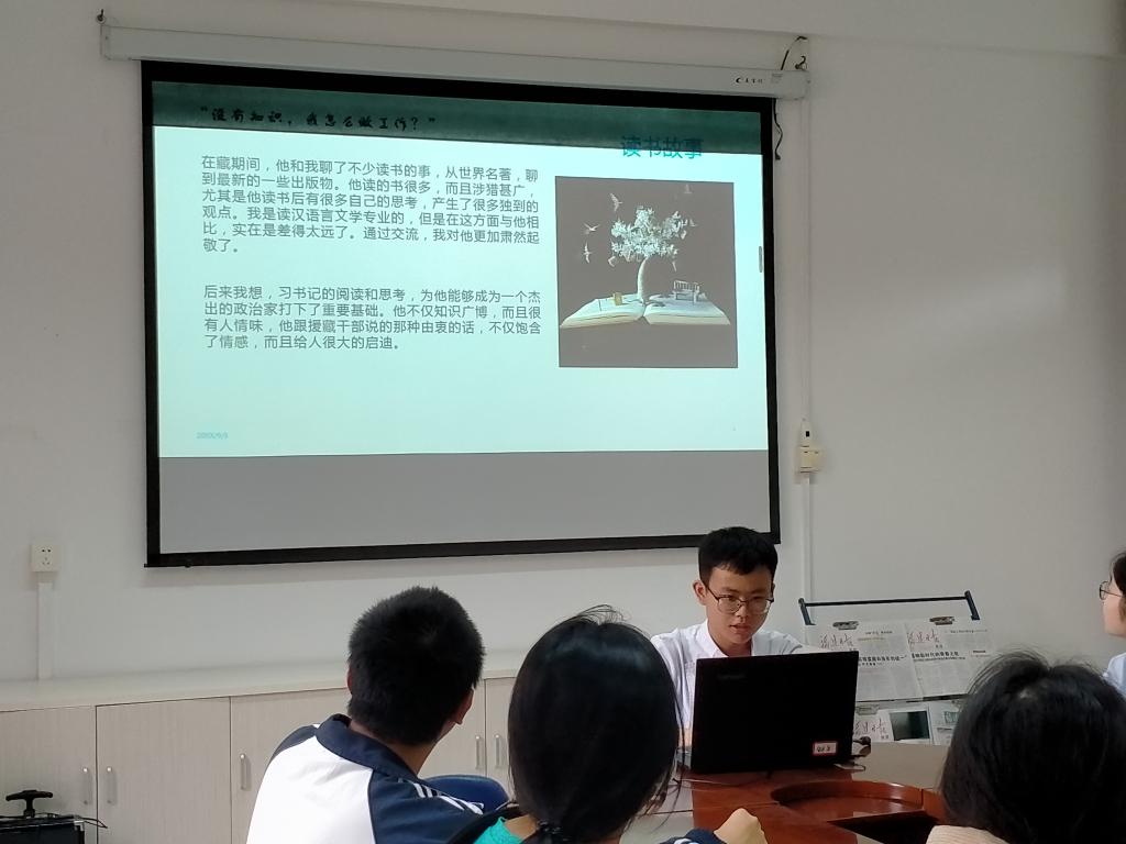 陳捷同學(xué)從人物簡介、從閩進(jìn)藏、平語近人、讀書故事、援藏項目、聯(lián)系惦記、工作政策這幾個方面對這篇采訪錄進(jìn)行了介紹,并選取了部分孫永明同志與習(xí)近平總書記的經(jīng)典對話,以及孫永明同志對習(xí)近平總書記的評價與隊員們進(jìn)行分享,從對話中我們能感受到習(xí)近平總書記對待工作的認(rèn)真嚴(yán)謹(jǐn)和對待同志、人民的友好可親。在援藏工作上,習(xí)近平指出:“在高原上工作,最稀缺的是氧氣,最寶貴的是精神。長期以來,一代又一代共產(chǎn)黨員舍棄常人所擁有的、放棄常人所享受的,扎根雪域高原,矢志艱苦奮斗。廣大黨員、干部要發(fā)揚(yáng)優(yōu)良傳統(tǒng),不斷為“老西藏精神”注入新的時代內(nèi)涵。這也讓在場的隊員備受激勵和鼓舞。