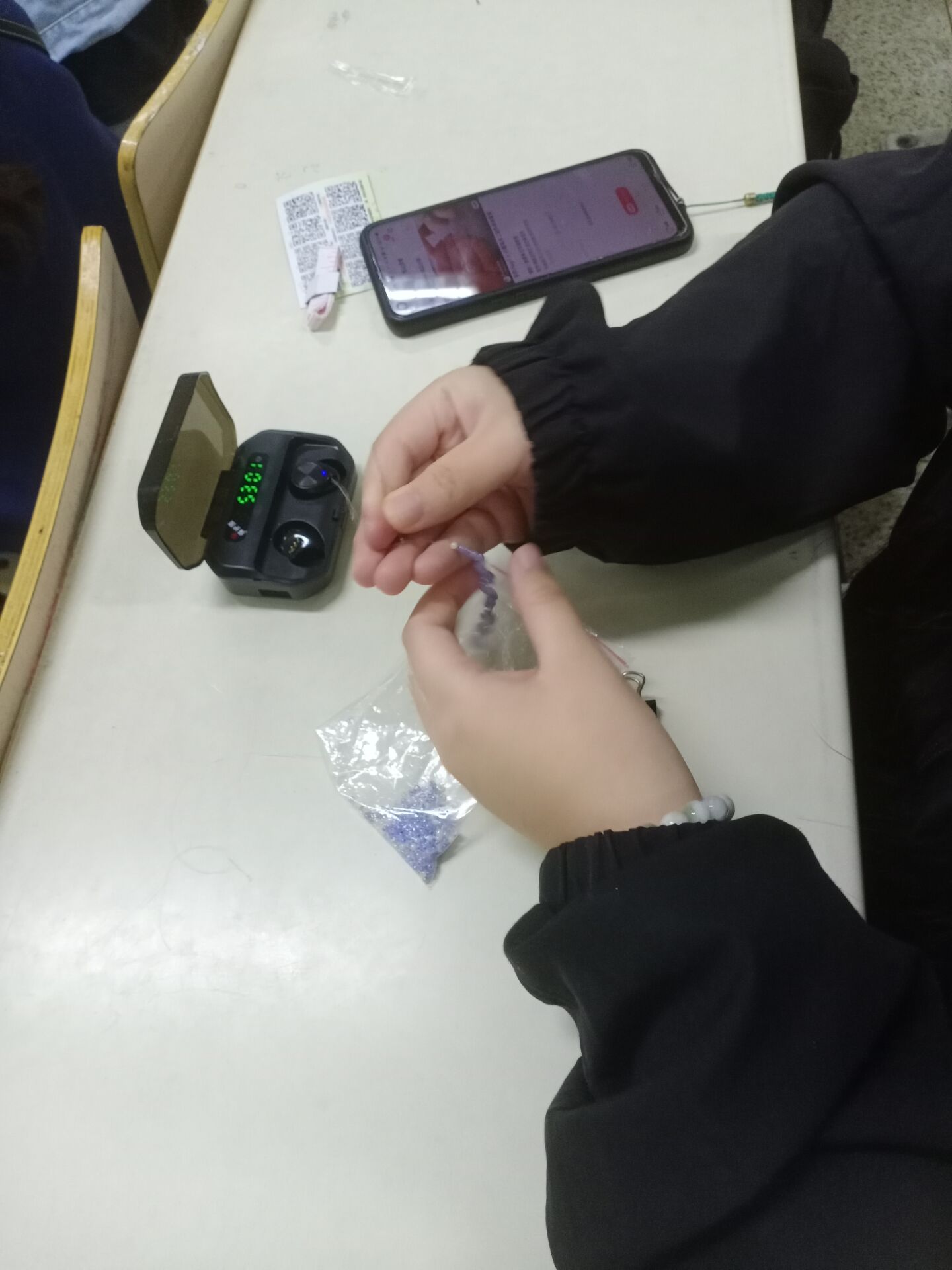 活動首先由社團干事鄧芳歡對手鏈編織技藝的來源與演變進行了介紹,并詳細講解了制作春日手鏈的方法與技巧,隨后社團成員根據(jù)講解的制作方法進行手鏈編織。同學們發(fā)揮各自的想象力,將色彩艷麗的珠子匯聚成各式各樣的小雛菊,手繩上不同色彩相交匯,形成晶瑩剔透的手鏈,手鏈花色各異,展現(xiàn)出不同的氣質(zhì)。