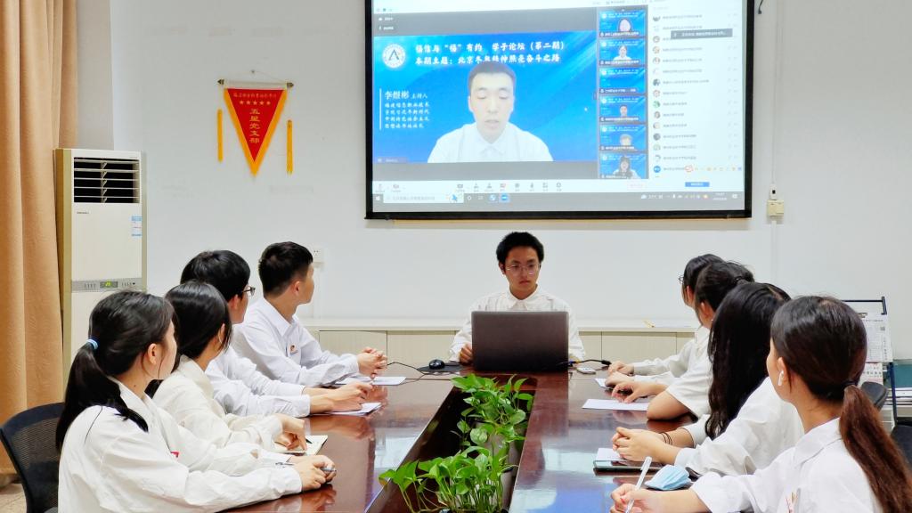 我校習(xí)近平新時(shí)代中國特色社會(huì)主義思想讀書社社長葉鎵萍作為交流代表,參與在線交流,她指出:“雙奧”帶來的“C位”視角,讓中國青年擁有了“平視世界”的民族自信,并深切感悟到“兩個(gè)變局”下的人生際遇與時(shí)代責(zé)任。中國青年要堅(jiān)定信念,彰顯“勇于擔(dān)當(dāng)”色彩,學(xué)習(xí)冬奧志愿者甘于奉獻(xiàn),將青春“小我”融入祖國“大我”;中國青年要頑強(qiáng)拼搏,彰顯“艱苦奮斗”色彩,學(xué)習(xí)奧運(yùn)健兒頑強(qiáng)拼搏,以永不懈怠的奮斗姿態(tài)投入,攀高峰、立事業(yè)的實(shí)踐磨礪中。