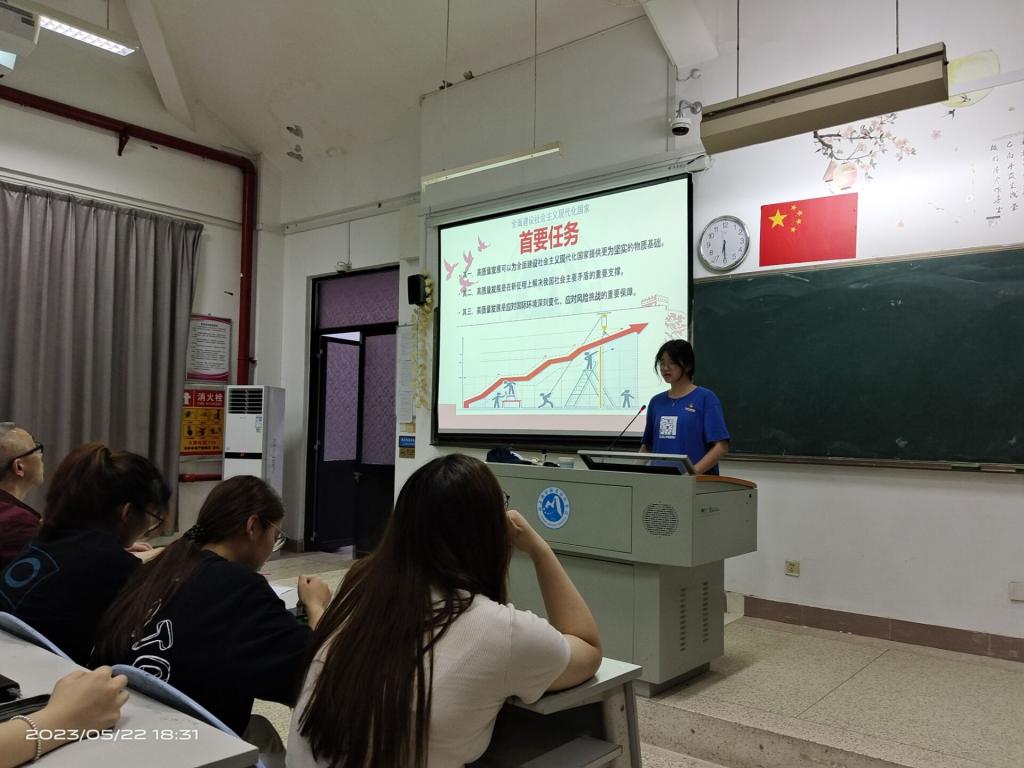 為了全面學(xué)習(xí)習(xí)近平新時(shí)代中國特色社會(huì)主義思想和黨的二十大精神,2023年5月22日,習(xí)近平新時(shí)代中國特色社會(huì)主義思想讀書社宣講團(tuán)成員在胡濟(jì)林老師的組織下,到教學(xué)樓310為四史班學(xué)生開展線下宣講交流。