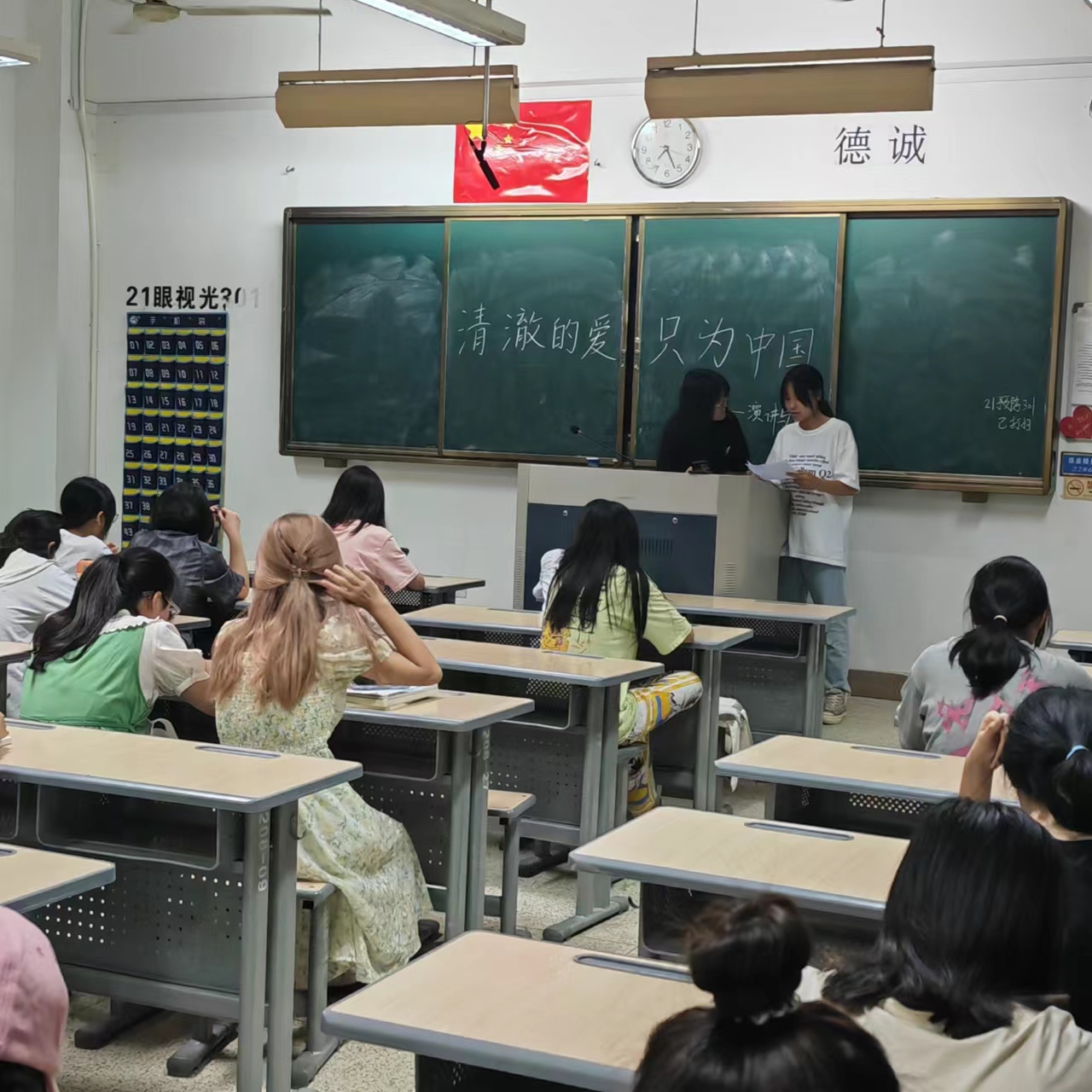 國慶節(jié)將至,普天同慶,以青春之名,書寫清澈摯愛,以心中紅星,獻(xiàn)禮中華。2023年9月24日,演講與辯論社在來朋珍、徐舒寧老師指導(dǎo)及社團(tuán)干事配合下成功舉辦主題為“清澈的愛,只為中國”的征文比賽,參賽者們揮毫筆墨,展現(xiàn)風(fēng)采,在文章中歌頌愛國情懷。我們生活在和平的年度,少年的肩膀要挑起清風(fēng)明月和草長鶯飛,要秉持先輩遺愿,懷揣愛國之心,充斥拼搏斗氣,擔(dān)當(dāng)時代使命!