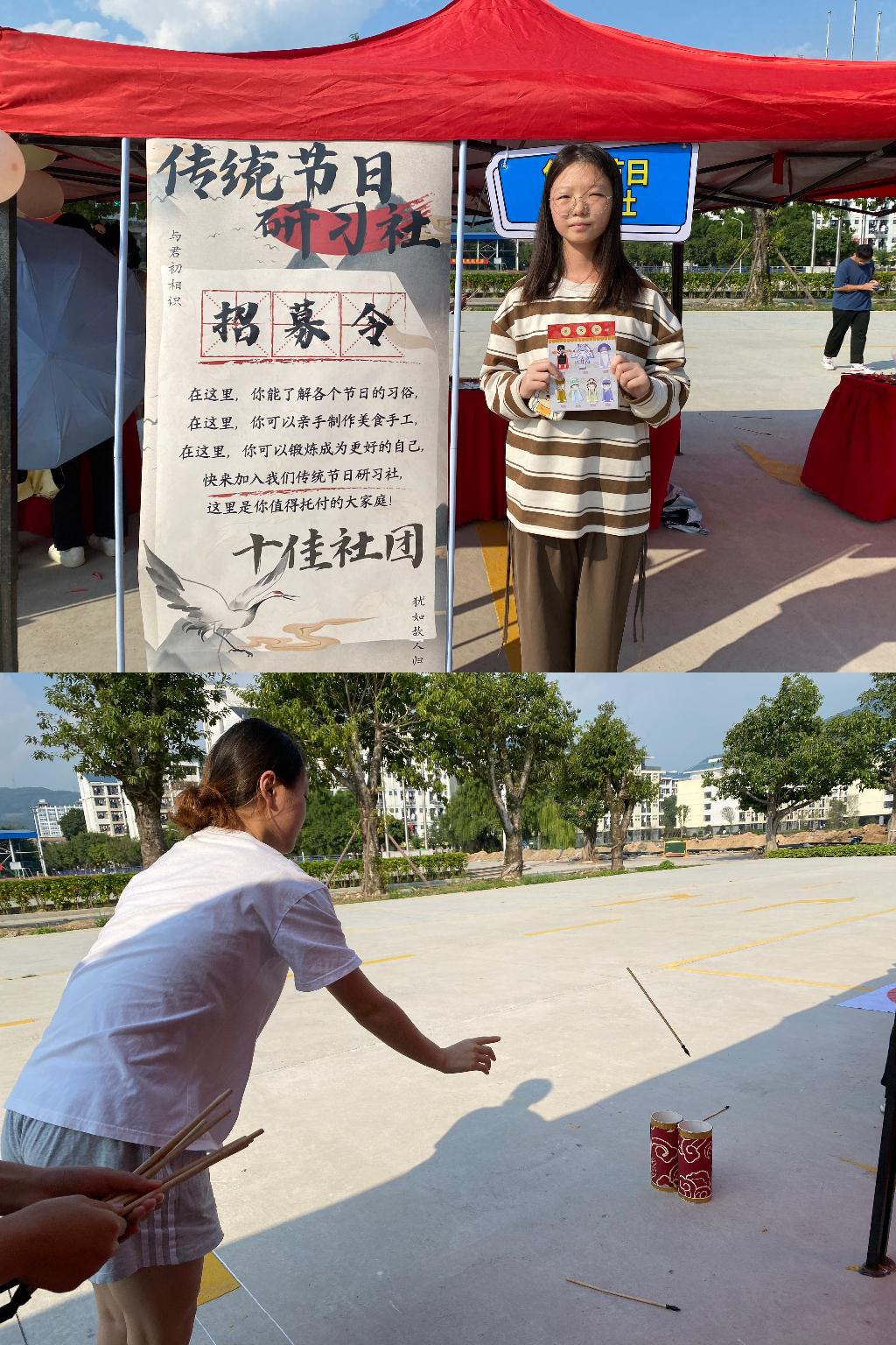 2023年10月15日,傳統(tǒng)節(jié)日研習(xí)社成功舉辦了一年一度的“游園會(huì)”暨納新活動(dòng)。在游園會(huì)活動(dòng)中,各個(gè)社團(tuán)各展所長,嗨翻全場的表演節(jié)目,各具特色的社團(tuán)小游戲,令人目不暇接。