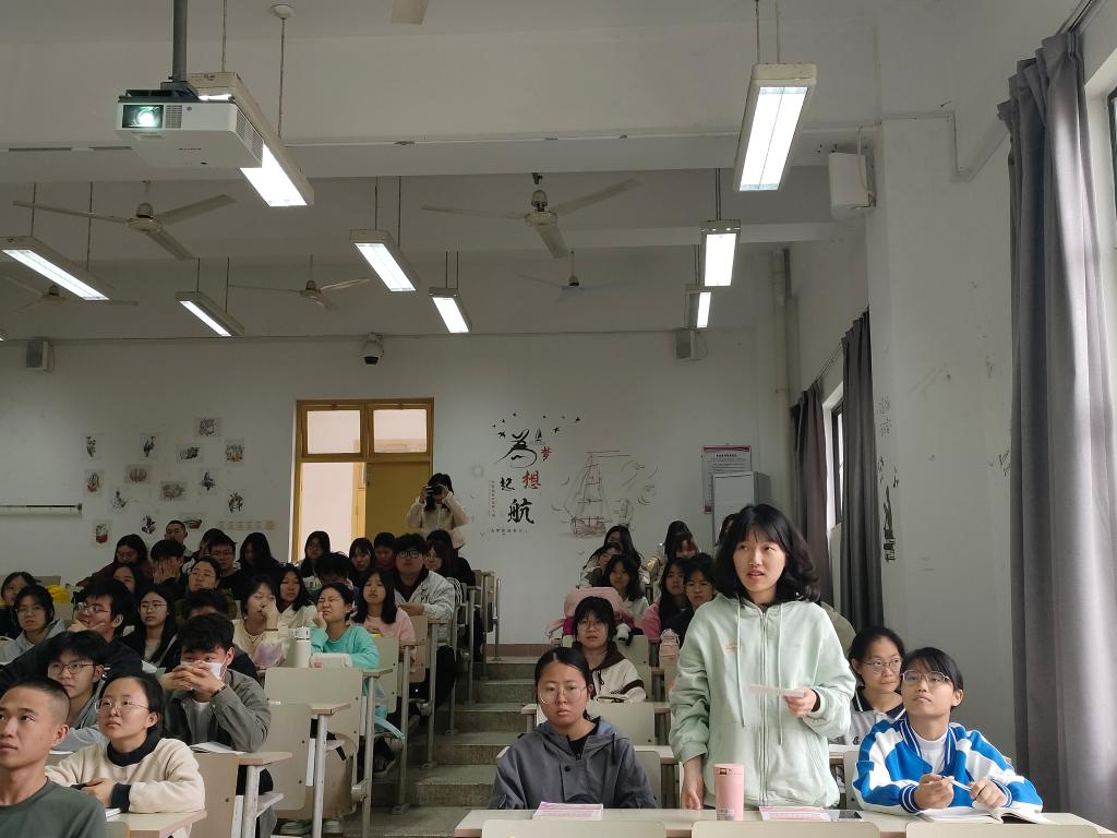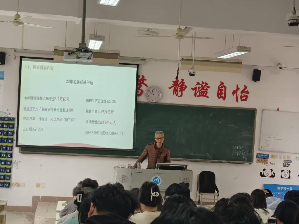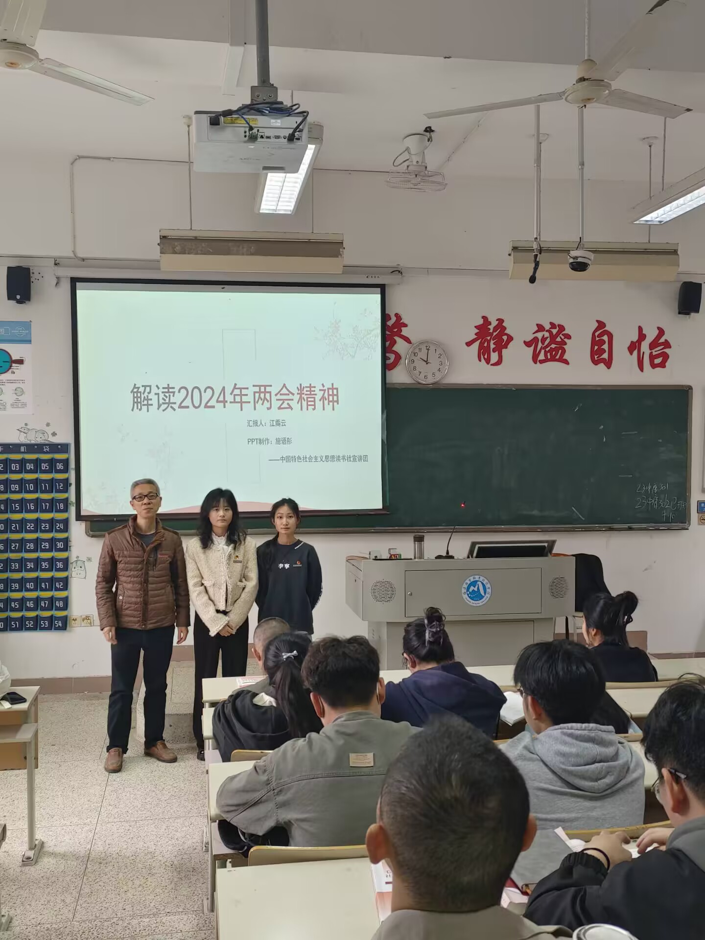 兩會精神具有鮮明的時代特征和針對性,它反映了黨和國家在新時期的工作重點(diǎn)和發(fā)展方向。在兩會精神的指導(dǎo)下,各級政府和社會各界應(yīng)該緊密團(tuán)結(jié)在一起,共同為實(shí)現(xiàn)國家的繁榮富強(qiáng)和人民的幸福安康而努力奮斗。學(xué)習(xí)貫徹兩會精神是當(dāng)代大學(xué)生的責(zé)任和義務(wù)。為了更好地學(xué)習(xí)兩會精神,2024年4月10日,習(xí)近平新時代中國特色社會主義思想讀書社宣講團(tuán)成員在胡濟(jì)林老師的組織下,到教學(xué)樓114為23中藥301、302班的同學(xué)們開展線下宣講交流。