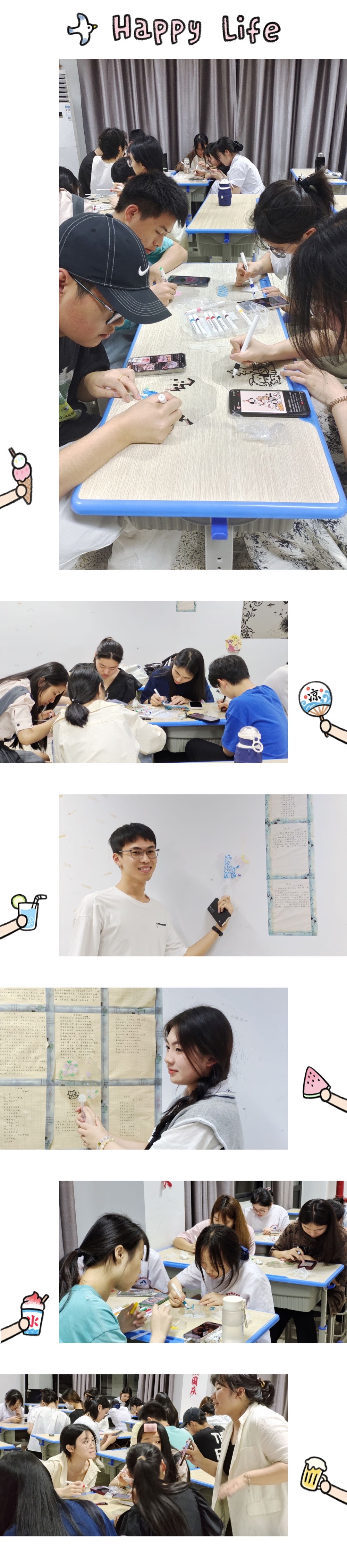 此次活動(dòng)由校傳研社社團(tuán)選修課成員和校習(xí)近平新時(shí)代中國(guó)特色社會(huì)主義思想讀書(shū)社(以下簡(jiǎn)稱(chēng)“讀書(shū)社”)原夢(mèng)隊(duì)成員共同參與,實(shí)踐課程主要圍繞傳統(tǒng)節(jié)日的詩(shī)詞,將本學(xué)期所學(xué)習(xí)的傳統(tǒng)節(jié)日理論知識(shí)以及詩(shī)詞,內(nèi)化于心,外化于行,變成一幅幅“扇子畫(huà)”。