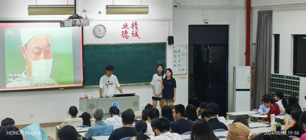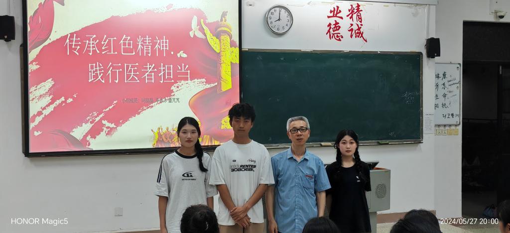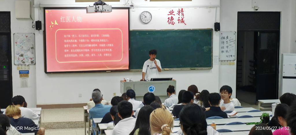 紅醫(yī)精神是具有中國(guó)特色的紅色醫(yī)療精神,源于中國(guó)革命戰(zhàn)爭(zhēng)年代,是在人民衛(wèi)生事業(yè)創(chuàng)建發(fā)展的戰(zhàn)爭(zhēng)年代中,廣大醫(yī)務(wù)工作者所形成的理想信念、價(jià)值取向、工作作風(fēng)、專業(yè)技術(shù)等多維度的思想體系。為了更好地傳承紅醫(yī)精神,2024年5月27日,習(xí)近平新時(shí)代中國(guó)特色社會(huì)主義思想讀書社宣講團(tuán)成員在胡濟(jì)林老師的組織下,到教學(xué)樓309為19美容501班、19衛(wèi)管501班、19智能醫(yī)療裝備501班的同學(xué)們開(kāi)展線下宣講交流。