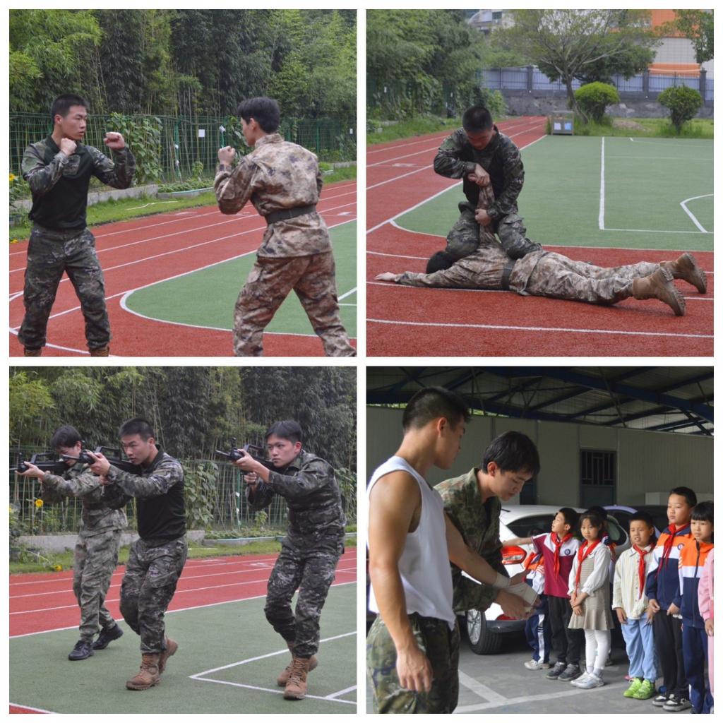 接著,八一學(xué)社與國旗護(hù)衛(wèi)隊(duì)一行來到操場,活動進(jìn)入到實(shí)踐展示環(huán)節(jié)。由八一學(xué)社3名退役大學(xué)生進(jìn)行擒敵、倒功、軍事戰(zhàn)術(shù)動作展示等軍事技能幫教互動,以及戰(zhàn)場快速包扎急救互救。其中,軍事技能的展示引起在場小學(xué)生們熱烈鼓掌,在他們心中樹立了崇高軍人形象。而戰(zhàn)傷救護(hù)是作為醫(yī)學(xué)生們履行職責(zé)、保障患者生命安全的體現(xiàn)。