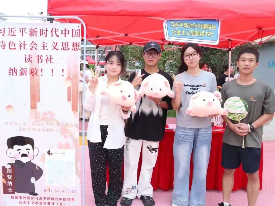 在這金秋九月,新學(xué)期的來(lái)臨昭示著新鮮血液的注入。習(xí)近平新時(shí)代中國(guó)特色社會(huì)主義思想讀書(shū)社(以下簡(jiǎn)稱(chēng)“讀書(shū)社”)的負(fù)責(zé)人和干事們開(kāi)始為新一輪的納新做準(zhǔn)備,在社團(tuán)招新的過(guò)程中,使出了十八般武藝,在盛大的社團(tuán)游園會(huì)中脫穎而出。