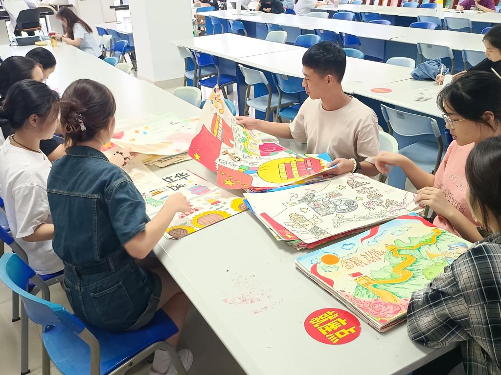 夏日午后,金色陽光撒滿圖書館四樓的大廳。大廳里只聽得到同學(xué)們?cè)诩埳仙成匙鳟嫷穆曇簦麄儺嫵隽似呤迥陙碜鎳?jīng)歷的風(fēng)雨,畫出了祖國當(dāng)下的盛世繁華,畫出了祖國未來開創(chuàng)的輝煌篇章。在一幅幅優(yōu)美的畫卷下,征集活動(dòng)艱難評(píng)選出一、二、三等獎(jiǎng)。