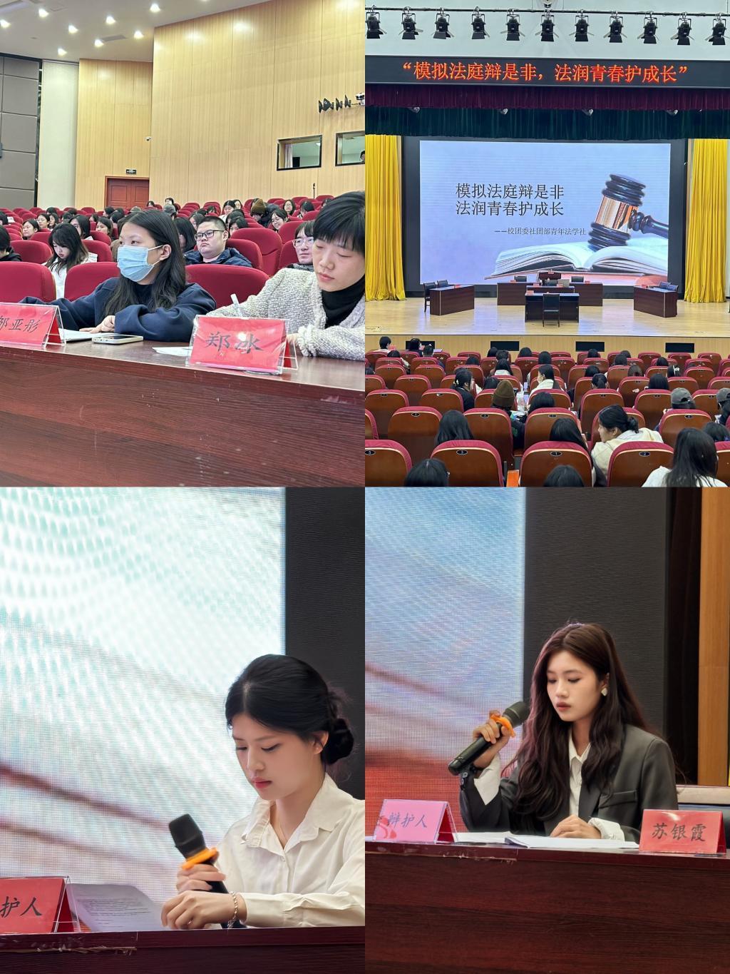 2024年11月28日,校團委社團部青年法學社在崇學廳成功舉行“模擬法庭辨是非,法潤青春護成長”正當防衛(wèi)系列案模擬法庭活動,指導老師鄒亞彤、鄭冰參與此次活動。