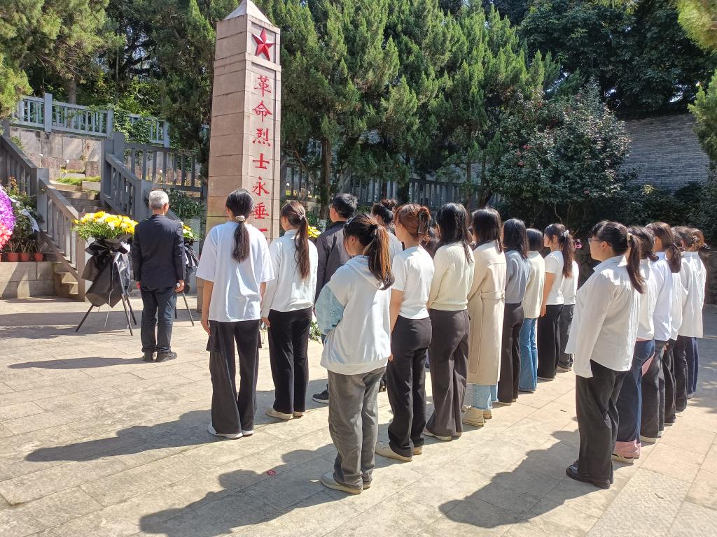 在烈士紀(jì)念碑前,全體人員懷著崇敬的心情,面向“革命烈士永垂不朽”紀(jì)念碑高唱國歌,激昂的旋律在陵園上空回蕩。唱畢,大家依次緩步向前,獻(xiàn)上手中的花束,向烈士們致以深切的緬懷。獻(xiàn)花結(jié)束,全場肅立,師生們低頭默哀一分鐘,沉痛悼念那些為了國家獨立、民族解放而英勇獻(xiàn)身的烈士們,陵園內(nèi)彌漫著深沉的哀思。