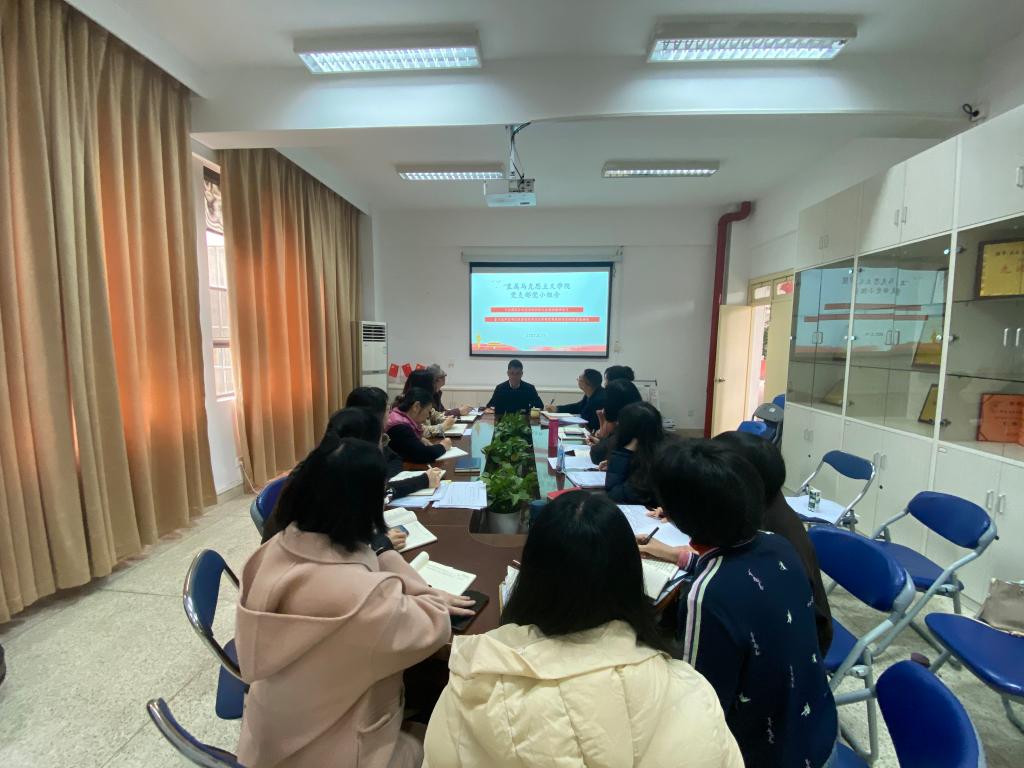 為深入學(xué)習(xí)貫徹2021年全國兩會(huì)精神、學(xué)習(xí)習(xí)近平在全國脫貧攻堅(jiān)總結(jié)表彰大會(huì)上的重要講話精神等,讓教師將兩會(huì)精神和“脫貧攻堅(jiān)”精神與實(shí)際工作相結(jié)合,2021年3月11日,直屬馬克思主義學(xué)院黨支部第一黨小組全體教師黨員在行政樓107開展學(xué)習(xí)活動(dòng)。
